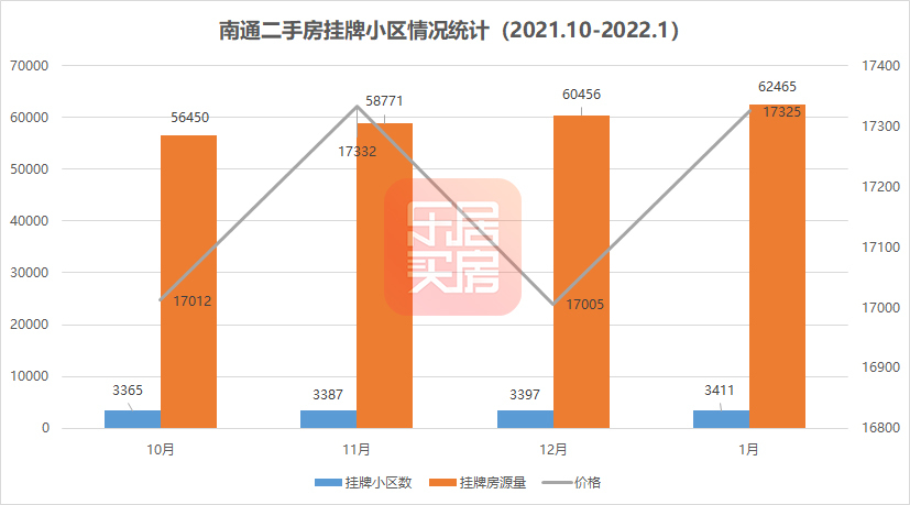 据贝壳二手房数据显示,截止1月31日,整个南通共有3411个二手房挂牌小区,挂牌房源量约62465套。