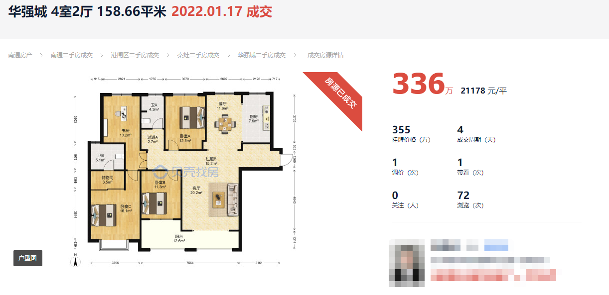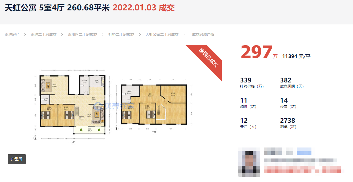 注:统计数据来源贝壳网,成交时间为2022年1月1日-2022年1月22日期间。(均为手动统计,数据仅供参考)