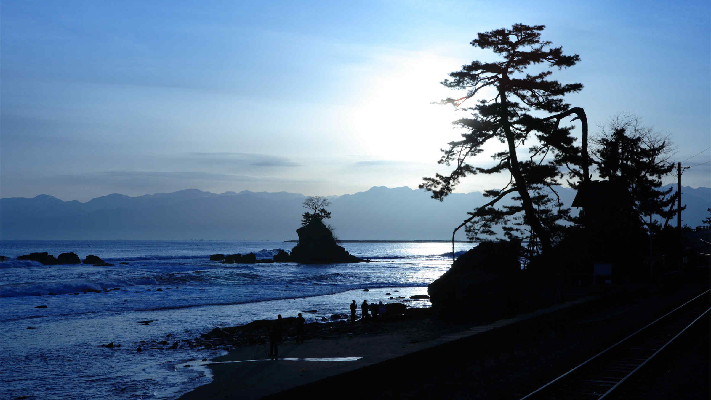 连接富山县高冈市与冰见市的JR冰见线的“越中国分-雨晴”区间,大体上沿着这里的海岸线通过,乘坐JR列车一边透过车窗观赏外面景色,也是一大享受。列车通过海岸线时的情景,也吸引了众多摄影爱好者前来这里抓拍列车通过的瞬间。
