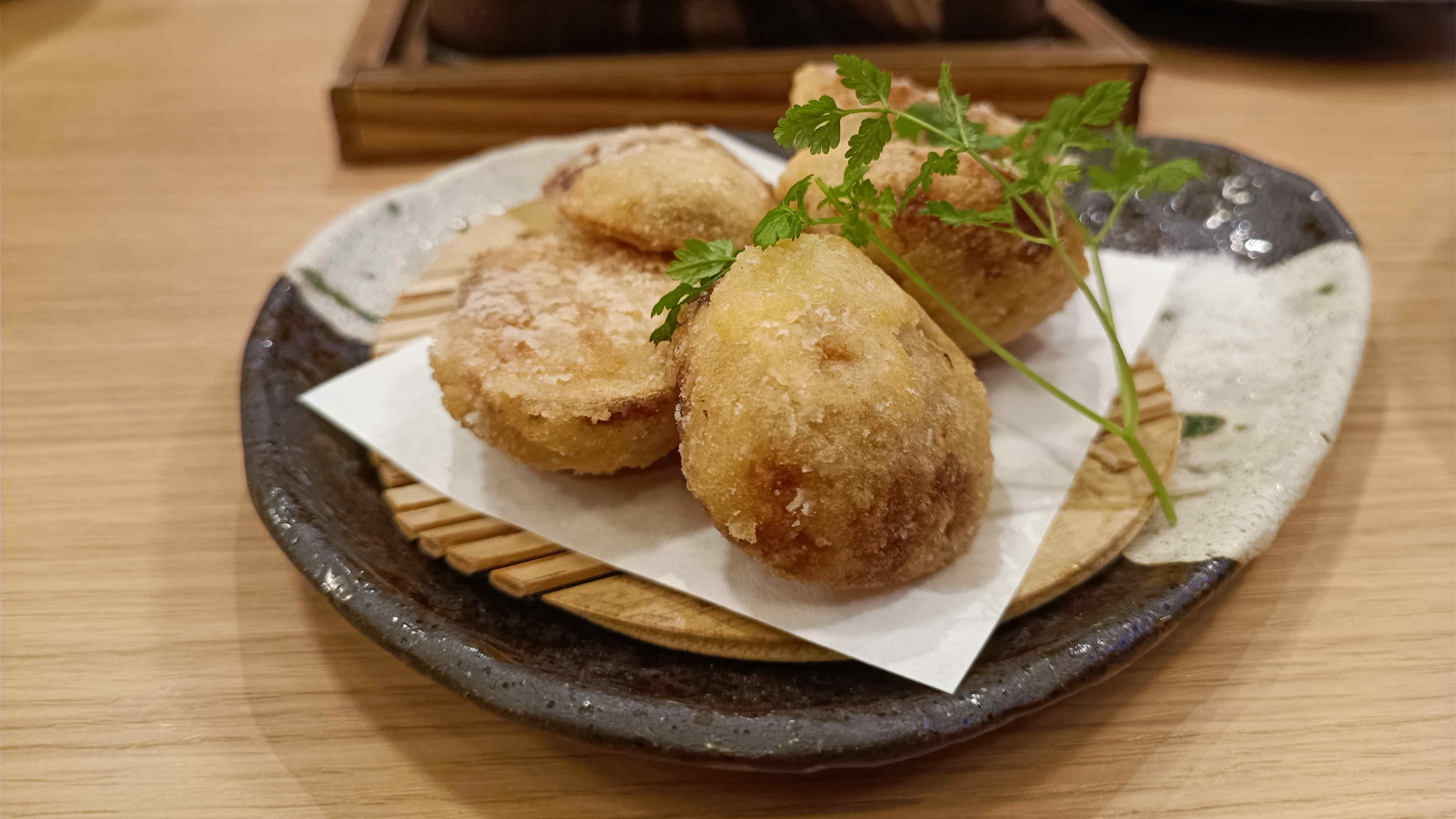 永平寺的银杏是下酒恩物,只有盛产美味海鲜的福井才有的海鲜菜饭必须安排上,福井县北部的大野町是芋头的产地,带着丝丝甜味的炸芋头很受欢迎;福井县竹田村的厚豆腐虽然很朴素,外焦里嫩的油炸豆腐很有口感;酒也是店主推荐的日本酒“黑龙”大吟酿,味道干净利落,能衬托出料理的味道,也是在永平寺地区制造的本地酒。