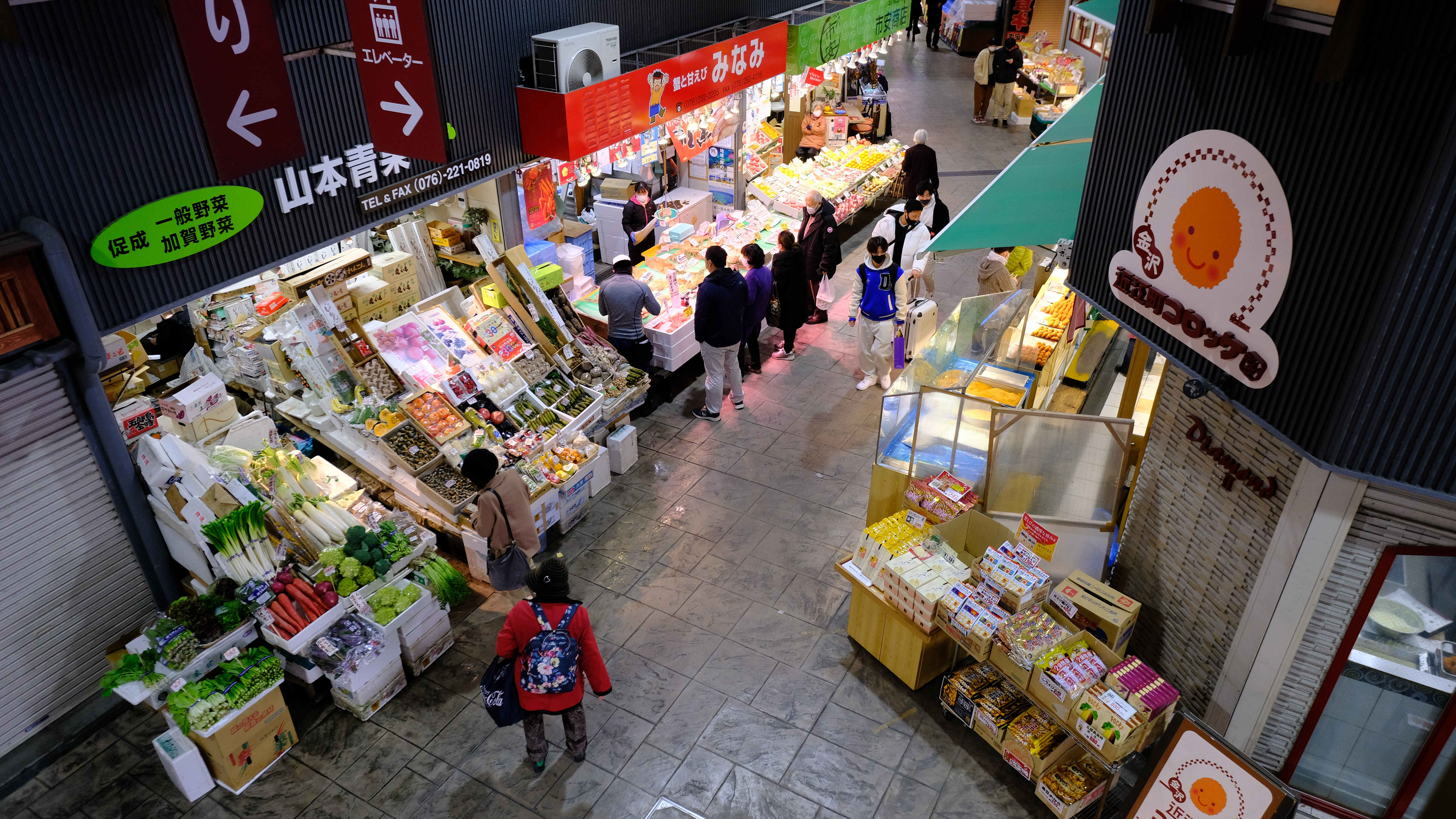 金泽,一个被大海恩惠的城市。近江町市场被誉为“金泽人的厨房”,除了金泽市内的居民以外,周边地区也有不少人会特意来这里购物。这个人气非常旺的市场,是深入金泽的最佳途径。