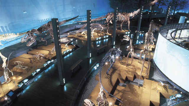 福井县恐龙博物馆位于日本最知名的恐龙化石产地:福井胜山市,是世界顶级恐龙博物馆之一。自1989年以来,在胜山市发现了很多恐龙化石。福井县立恐龙博物馆,正在研究着福井县发现的恐龙化石,还有世界其他地方发现的化石,在恐龙大厅里可以看到44具恐龙的全身骨骼,其中有10具的大部分骨骼以实物化石构成。最完整的是90%以实物化石装架的圆顶龙全身骨骼,千万不要错过。