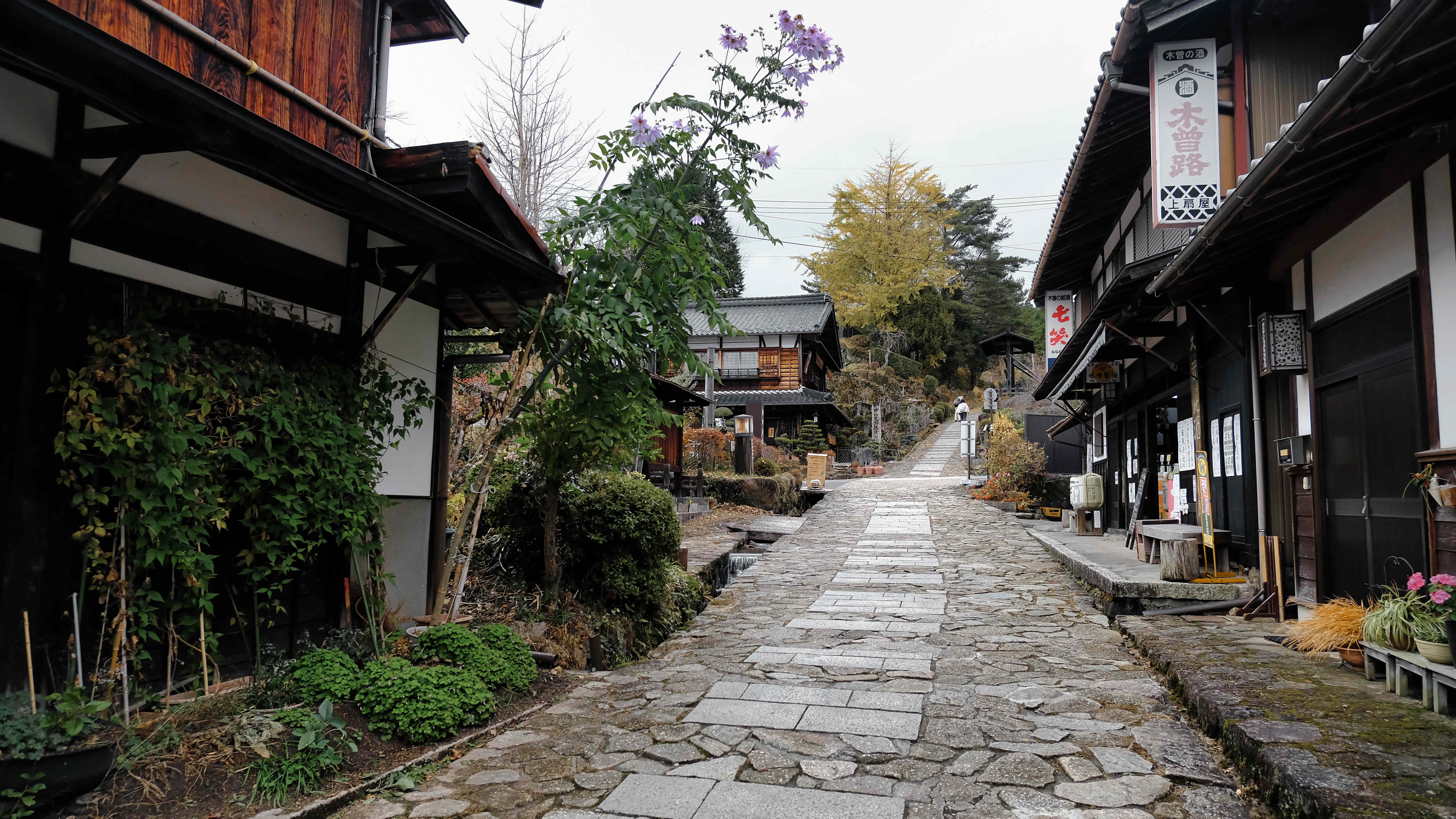 梳洗后趁着晨光和朝阳,兴奋地去街道上散步。踏上古老的街道,仿佛回到了过去,想象过去的商贾们来往于江户间都会经过这条石板路,路两侧的很多古色小店,都保留完好。