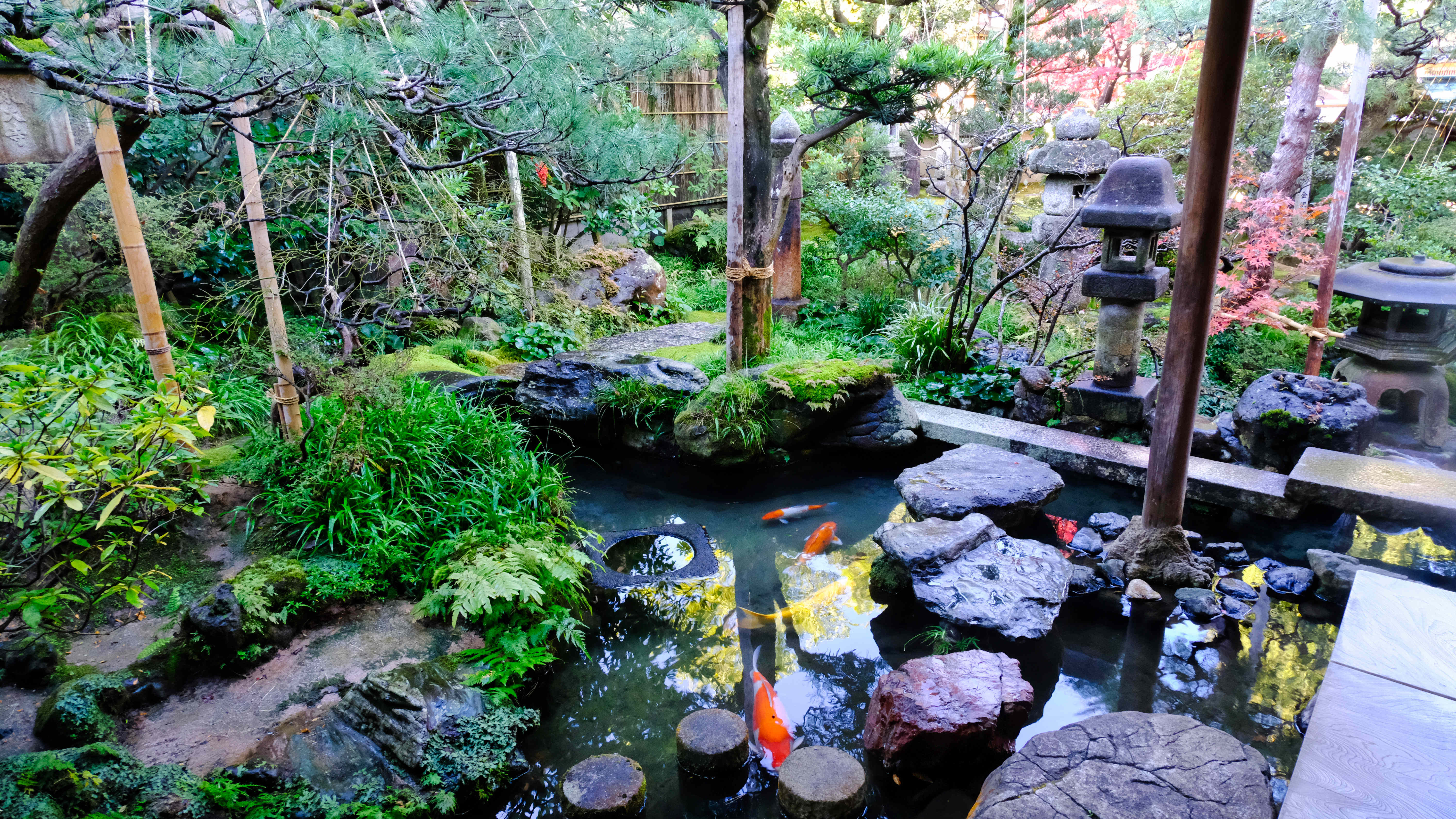 这里被美国专业庭园杂志排名为日本庭院第3名,排在前面的是岛根县的足立美术馆和京都的桂离宫,是来金泽必打卡之地。这里的建筑反应出当时加贺藩的严重正式建筑风格,非常精致小巧。檐廊边有流水环绕,溪水向深处流去形成一个静谧、幽深的空间。此外,庭院中还种有达400年“高寿”的杨梅树,并设有各种奇石怪岩,给人一种莫名的熟悉感与亲近感,很多明星都来这里拍摄海报。