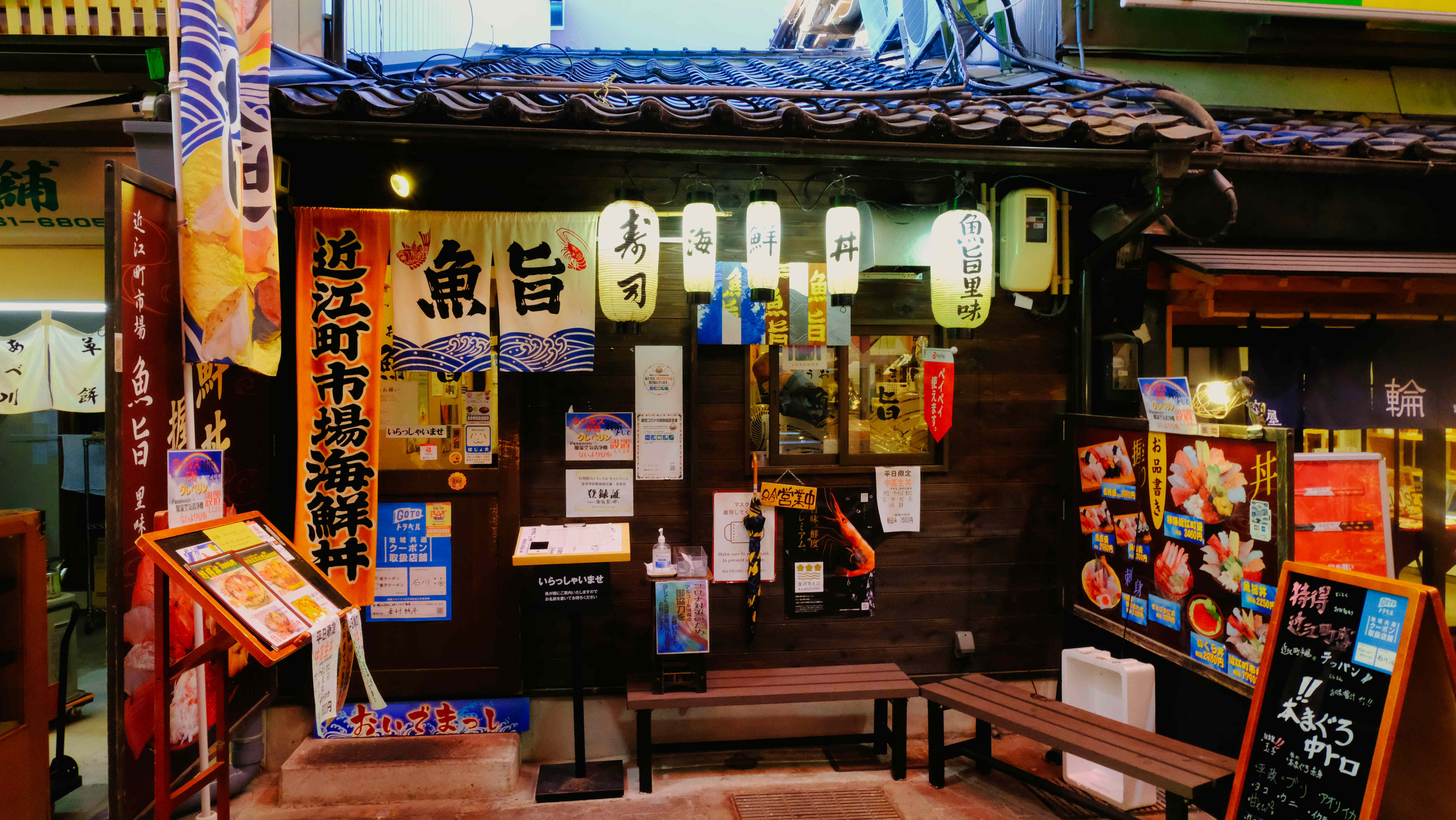 逛了一圈下来,发现这里真的太适合国人来逛吃了吧!在众多现做现吃的海鲜餐厅里,我们选了一对老夫妇经营的海鲜盖饭店,人气颇高,从开门前就有人开始排队了。使用近江市场的海鲜材料制作的海鲜盖饭,特别鲜美、口感Q弹,令人难忘。