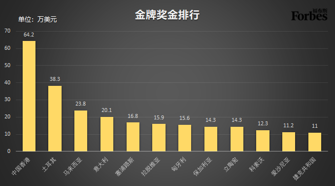 以下就是为个人项目的金牌得主提供六位数奖金的12个国家和地区;奖金金额以美元计,按1月28日的汇率从当地货币换算而来。
