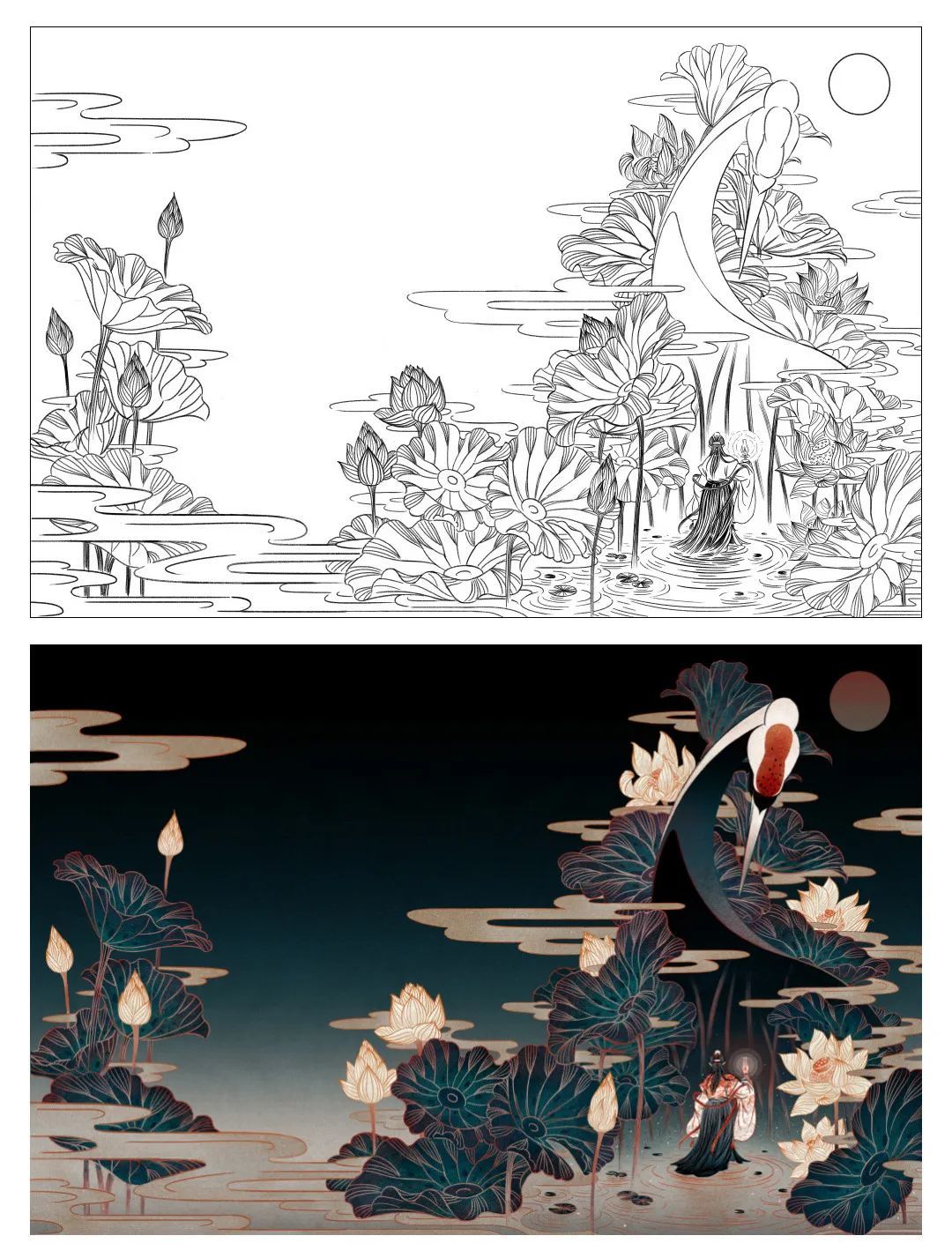 阮菲菲虽然各种文化风格的插画都会绘制,但还是亚洲文化、或者说国风的插画更多。
