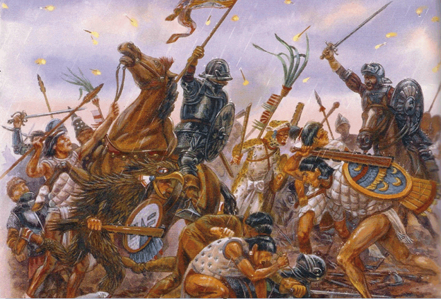 于是,奥巴通之战的经过与胜负归属,便在开始前就已大致确定好剧本。科尔特斯直接率领全部骑兵,以势不可挡的冲锋撞入对方阵中。面对依次由顶级精英、雄鹰战士和美洲虎武士组成的阿兹特克中军,取得了远超双方想象的超强效果。因为无论是镶嵌黑曜石利刃的马克胡特大棒,还是非常原始的长矛、飞镖或弓箭,都不能对高速驰来的骑兵构成威胁。大部分武士,也是首次遇到这类作战模式,丝毫不清楚该如何针对回应。一旦负责指挥的马特拉辛卡特被击杀,便迅速陷入群体混乱之中。更多全副武装的西班牙步兵,也在稍后涌入骑兵冲出的缺口,继续以钢铁冷兵扩大战果。