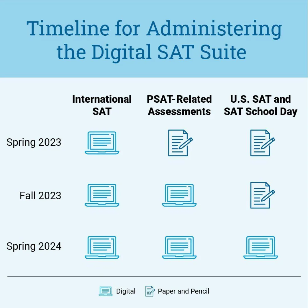 从笔考过渡到机考能给学生和教育工作者带来很多好处,但SAT测评系列(SAT、PSAT/NMSQT®、PSAT™10、PSAT™8/9)的许多重要特点仍将保持不变。