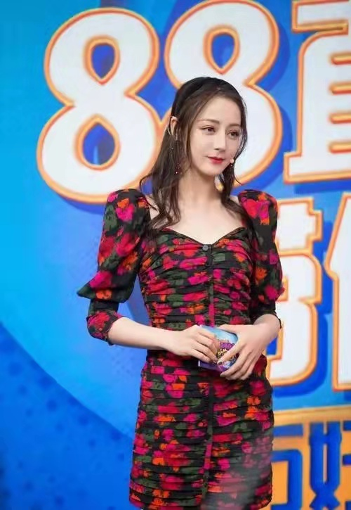 这件褶皱的连衣裙,黑红绿的配色简直灾难,走进老年人的服装专卖店,里面一定会有一件类似这种花纹的衣服。奶奶的花衬衫几乎都是这种图案,也就是迪丽热巴,穿上这种衣服依然漂亮。