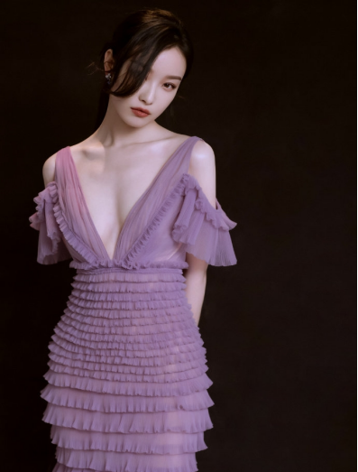 倪妮白到发光,穿着这身薄紫色纱裙,清冷感十足。