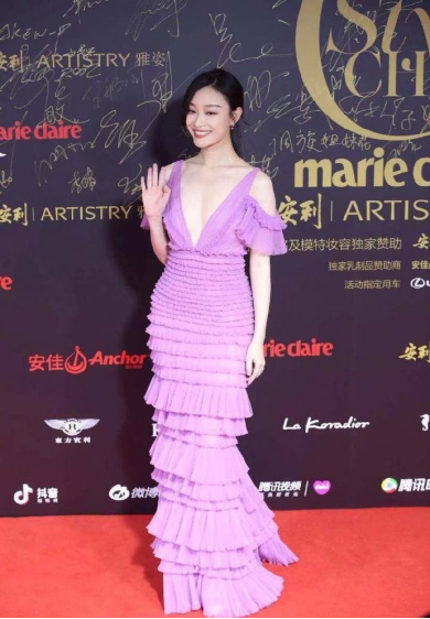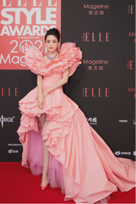 ELLE红毯这套粉色花苞礼服,夸张的花边和显黑的颜色,有一种花开富贵的俗气感。另外这件衣服总给人一种似曾相识的感觉,像不像小时候给芭比娃娃换装的衣服,非常塑料。若是没有娜扎的白皮肤和高挑的身材,穿上妥妥的灾难。