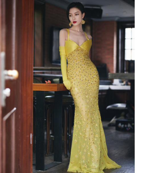 唐嫣这套黄色的礼服和上面倪妮是同一时期的红毯造型,这套礼服手套上的两个蓝色的绣球花和娜扎的花苞异曲同工,这种明亮的颜色搭配和衣服质感看着完全不像是高定礼服。