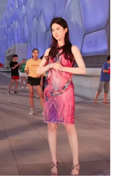 刘亦菲的破布花裙,换个人穿上就是“行走的五花肉”,但刘亦菲的名品脸蛋撑住了这条裙子,人群中她依旧是最炸眼的那一个。