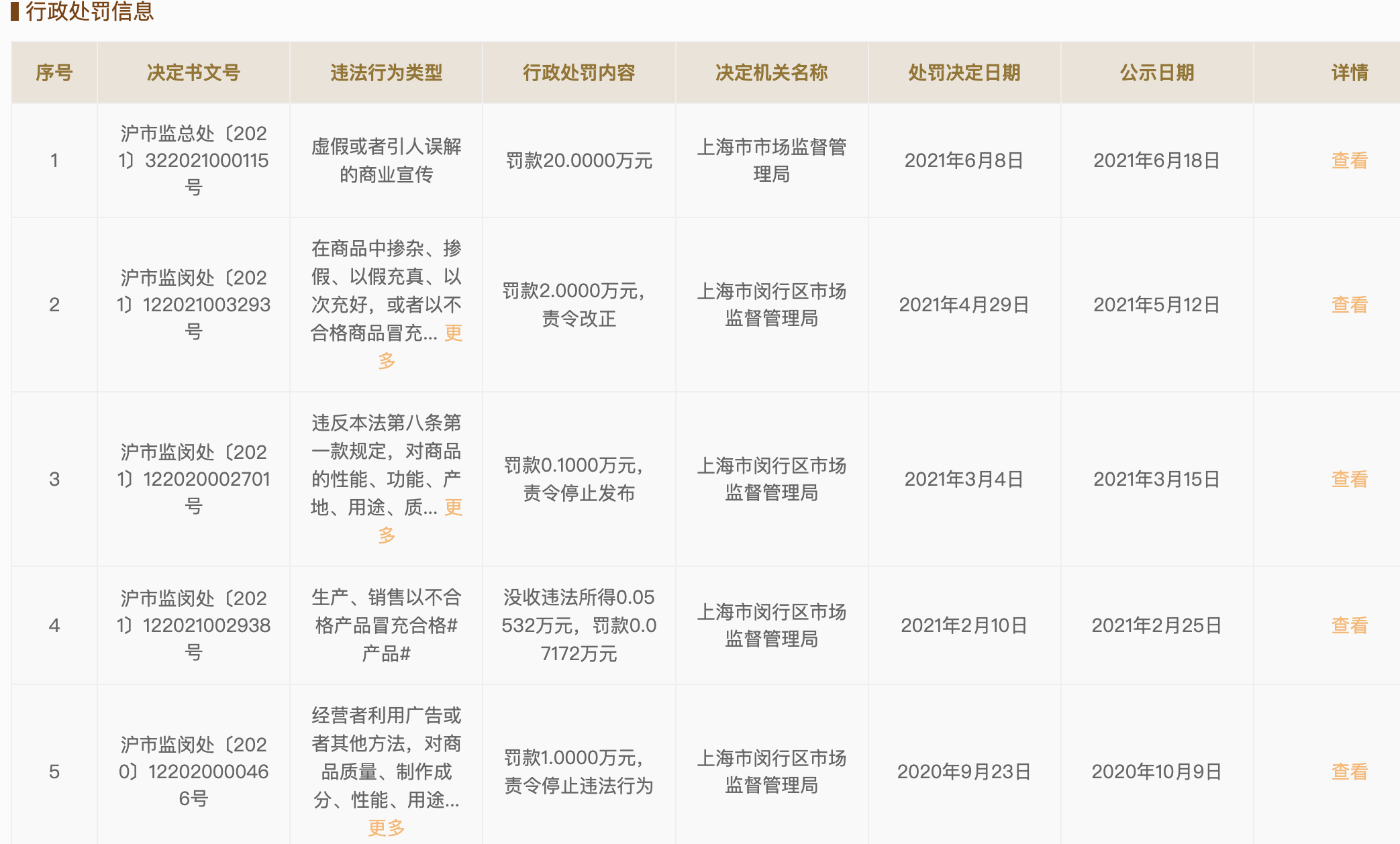 据贝多财经不完全了解,仅在2021年,衣念(上海)时装贸易有限公司就多次收到罚单,被处罚的主要原因是“在商品中掺杂、掺假、以假充真、以次充好,或者以不合格商品冒充合格商品”。
