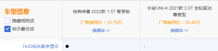 当然,这也是哈弗神兽对比同级SUV的优势之一,就拿长安UNI-K来说,其全系6款车均未搭载HUD,而哈弗神兽除低配外,均有搭载,让驾驶者在减少走错路状况的同时,为安全加固,减少频繁低头看手机导航所带来的隐患。