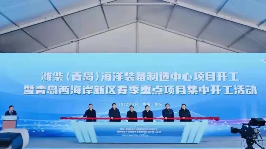 2022年2月8日,青岛西海岸新区组织春季重点项目集中开工活动,潍柴(青岛)海洋装备制造中心、上海寰宇乾堃航天装备项目等总投资889.7亿元的125个重点项目集中开工。主会场设在薛家岛街道潍柴(青岛)海洋装备制造中心项目现场,山东自贸试验区青岛片区、董家口经济区等9个功能区设立分会场。青岛市主要领导,山东重工集团有限公司党委书记、董事长,潍柴控股集团董事长谭旭光等在主会场出席开工仪式。