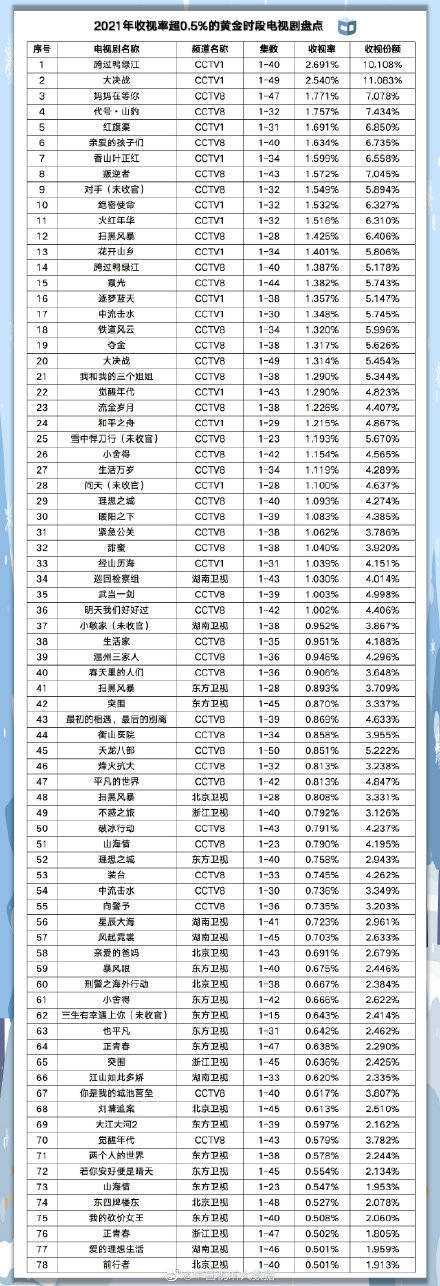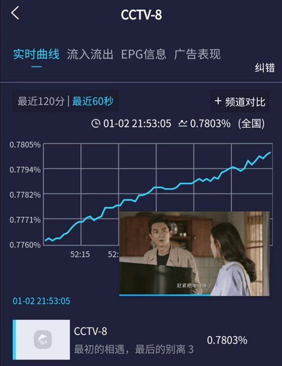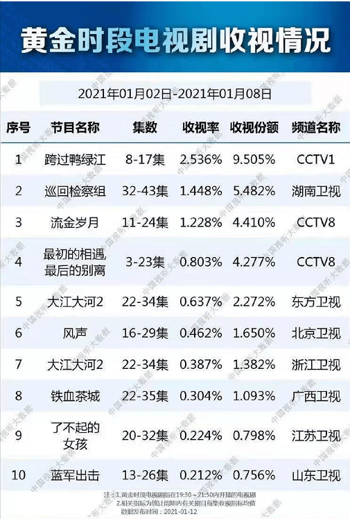 《最初的相遇最后的别离》2021年被央视青睐为开年大剧,在全国电视剧收视率排名中稳居在前四↓