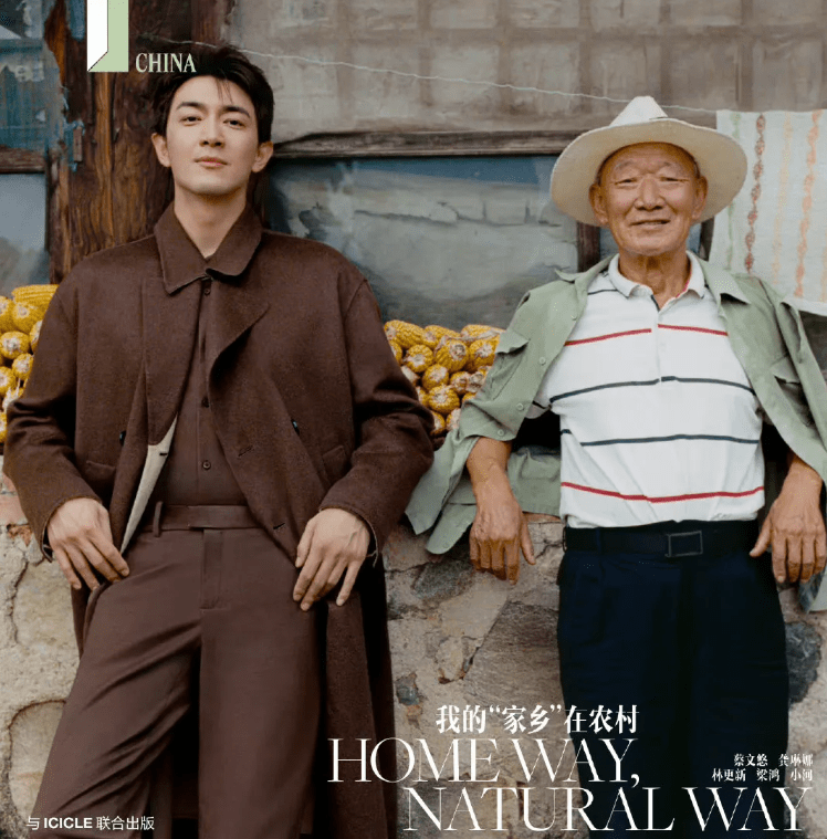 乡野山间的自然质朴的场景,也挡不住林更新扑面而来的高级时尚感↓
