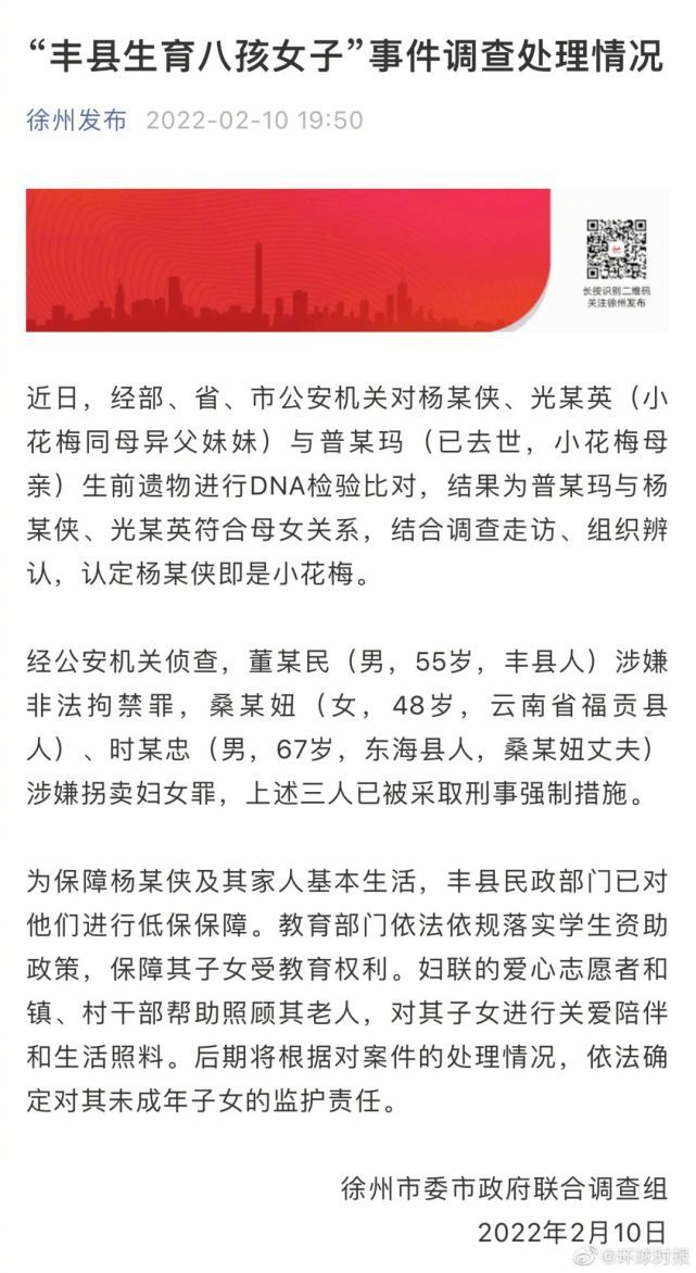2月10日,“徐州发布”公布事件调查处理情况:三人被采取刑事强制措施