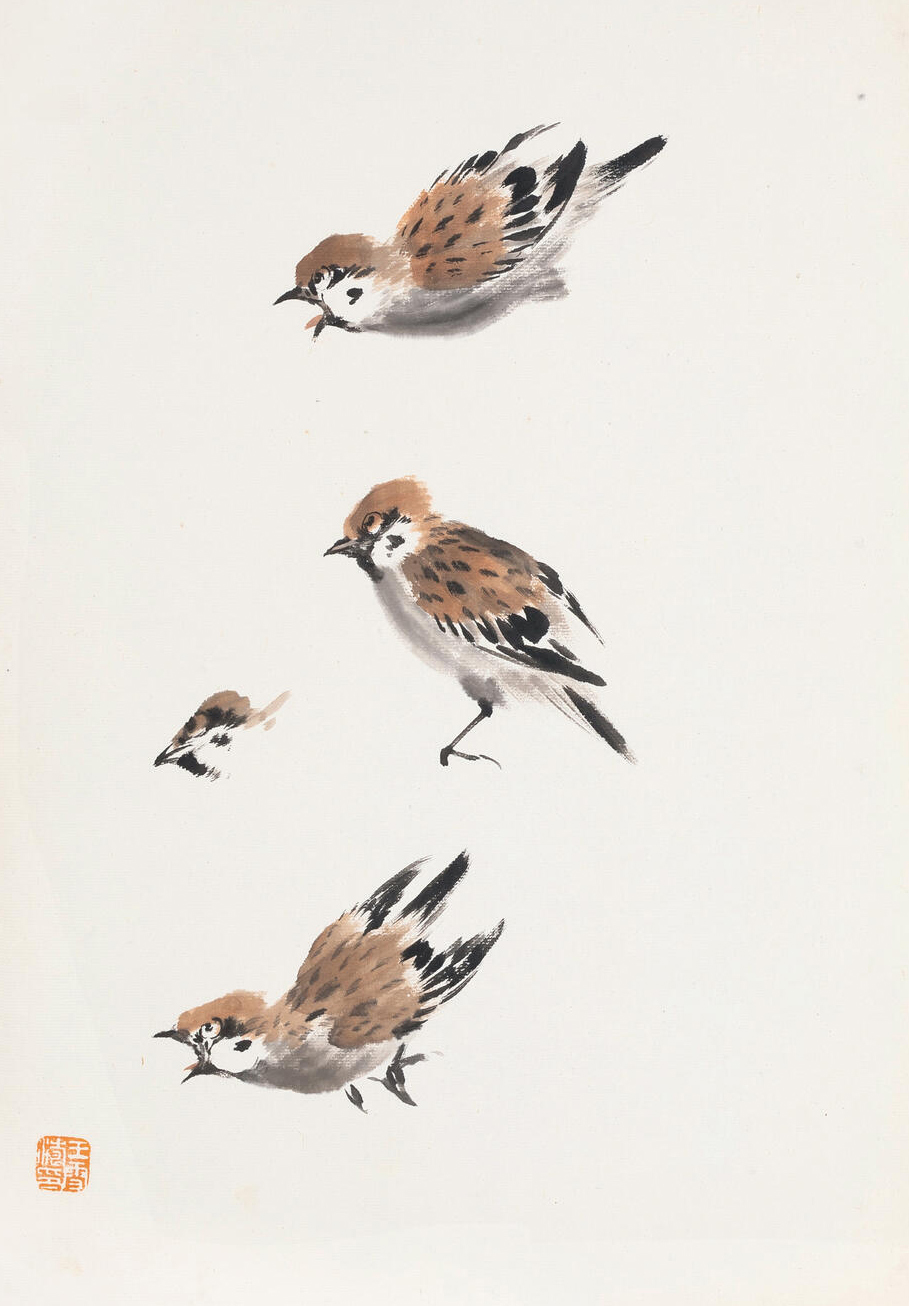 王雪涛,河北成安人,原名庭钧,字晓封,号迟园,中国现代著名小写意花鸟画家。1922年考入北平艺术专科学校西画系,后转读国画系,受教于陈师曾、萧谦中、汤定之、王梦白等诸位前辈,尤受王梦白影响最大。1924年拜齐白石为师,奉师命改名雪涛。1926年毕业后留校任助教、讲师。抗日战争期间,北平沦陷,辞去教职,专事绘画创作,卖画为生。同时,潜心师传统,上追徐渭、陈淳,又得名师指点,画艺大进。历任北京画院院长、中国美术家协会理事、美协北京分会副主席、北京市第七届人大代表、北京市第五届政协常委、中国农工民主党中央联络委员会委员及北京市委委员。著有《王雪涛画集》、《王雪涛画辑》、《王雪涛画谱》、《王雪涛的花鸟画》等。
