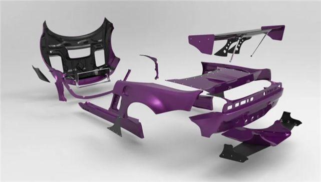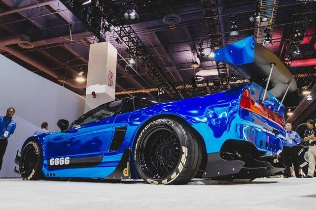 套件并不单单是前后宽体翼子板,而是包含了除车门以外的大部分车身覆盖件。最有特色的是,这个套件把前包围和前盖做成了一体,并且改用前翻式,不仅能降低车头重量,而且更有赛车范儿!后包围被去除,换上了巨大的碳纤维扩散器。加装火箭兔宽体套件后的NSX看起来整体性非常高,而且看上去更加饱满,碳纤维扰流件也让外观更具侵略性。
