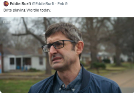 有网友配图称:“(这就是)今天玩Wordle的英国人。”图中人一脸愁容。↓