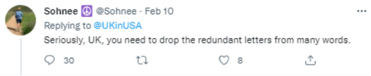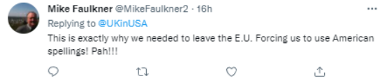 这一推文也立即引发网友对英美不同单词拼法的争论。