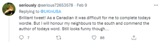 也有习惯英式拼法的加拿大网友表示赞同:“很棒的帖子!作为一个加拿大人,今天的Wordle对我来说也有点困难。”↓