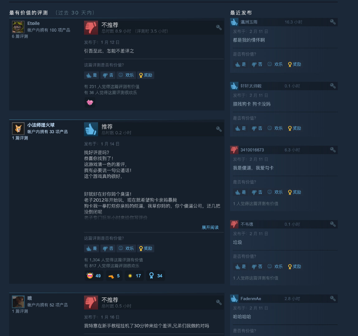 不过,游戏刚上线就获得了“差评如潮”的评价,甚至一度登上了差评榜首。