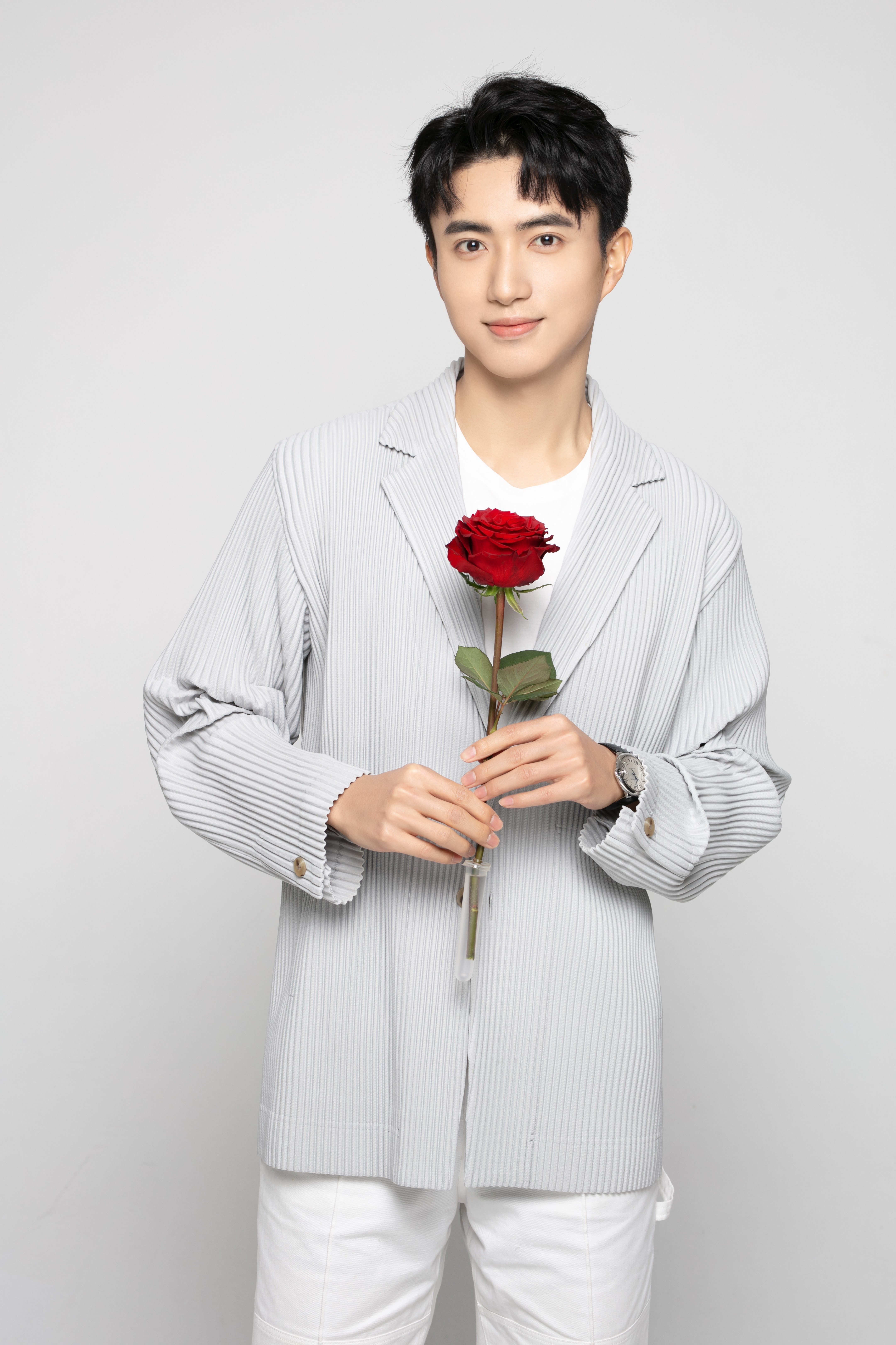 2月14日,演员张瑞成的最新情人节限定写真温暖上线,纯色条纹外套内搭清爽白T,可翩翩绅士,也可随性休闲,简约中兼具时尚风格,手执玫瑰,化身暖系男友为大家送上情人节祝福。