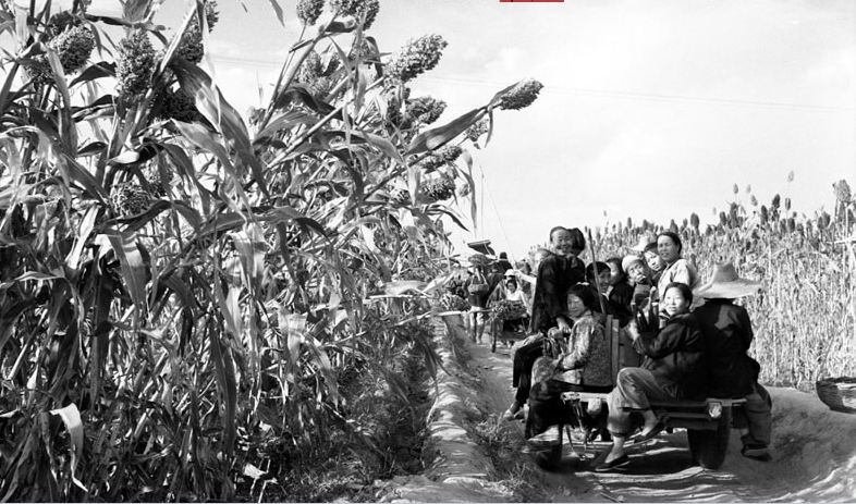 照片上,人们坐着马车,开开心心地去收割高粱。高粱,是我国西北地区的重要作物,他耐旱,适于在干旱地区种植。高粱可以用来做饭,也可以用来酿酒。