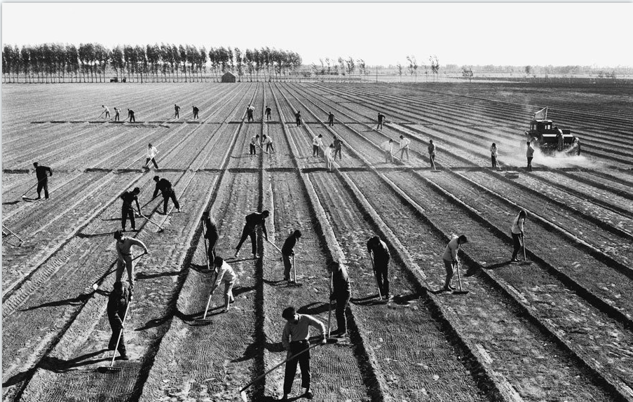 图为1970年,河南省温县农民为夺取小麦丰收,精耕细作播种小麦。在当时,只有少量的平地里能用上机械,大部分地方,还得靠人力。像这种大规模集体劳动的场面,八十年代后就见不到了。