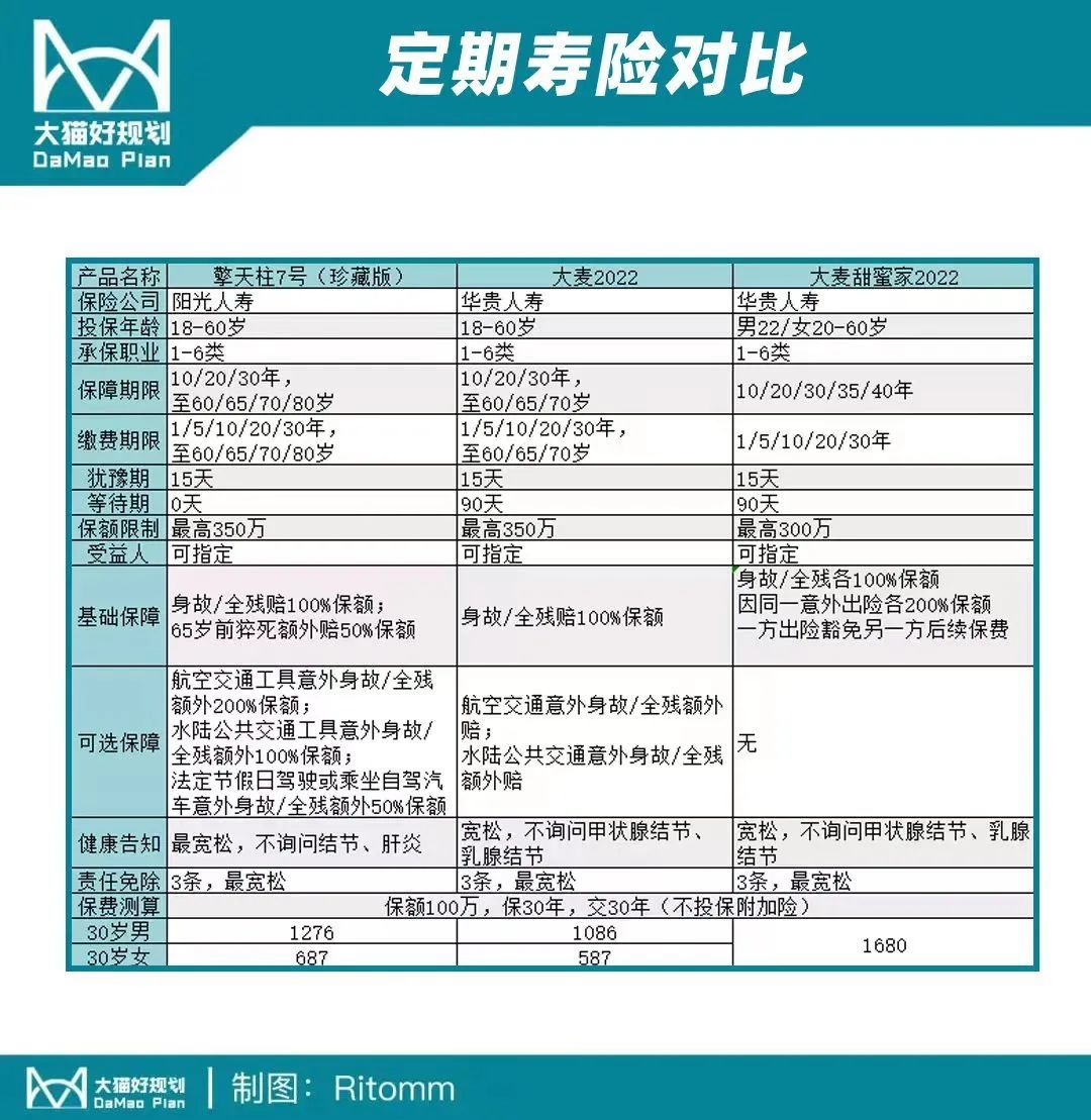如果就看重性价比,那大麦系列依然是定期寿险中的地板价,可以优先选择。