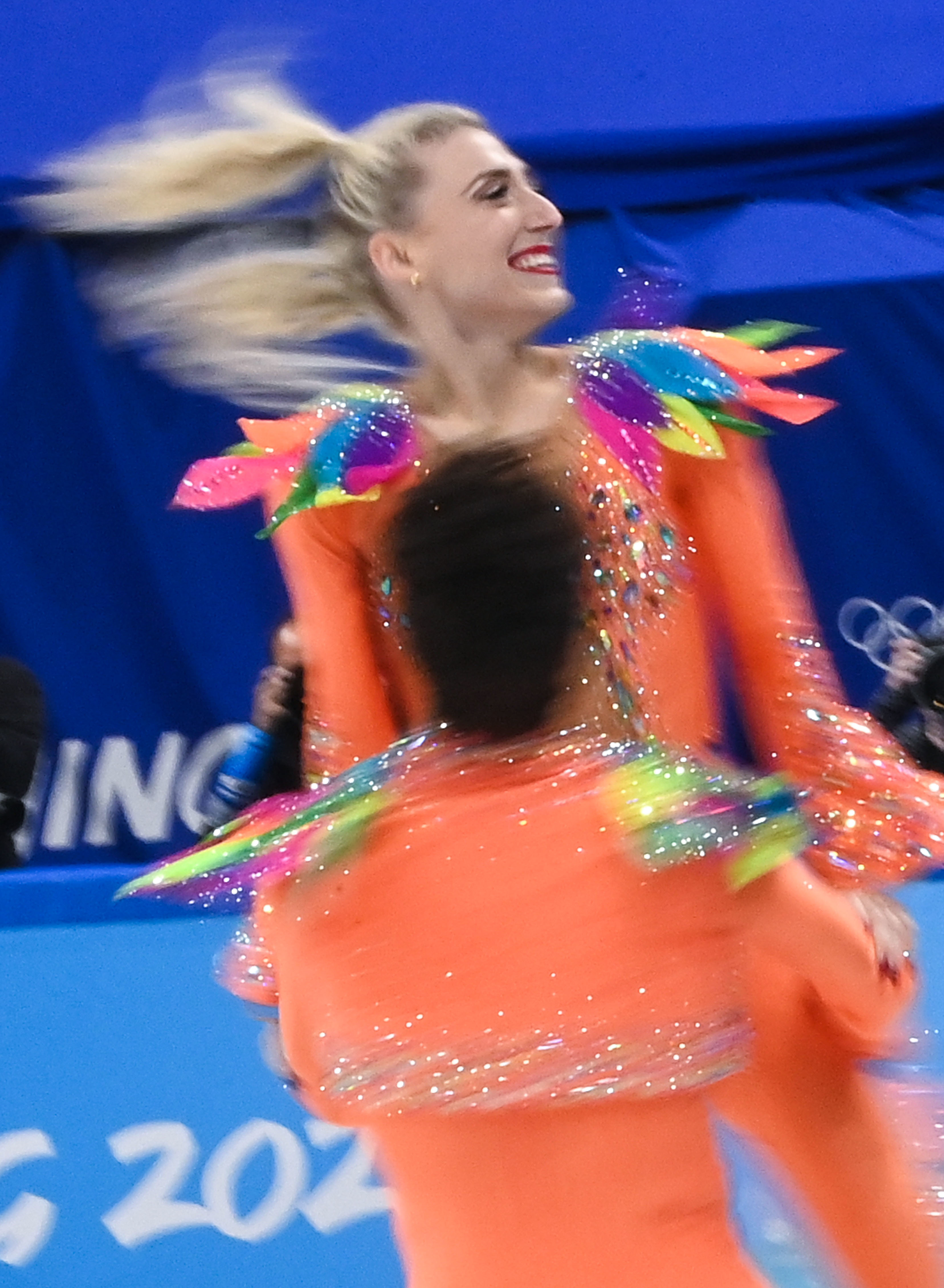 2月12日,美国选手麦迪逊·乔克(左)/埃文·贝茨在比赛中。新华社记者 张玉薇 摄