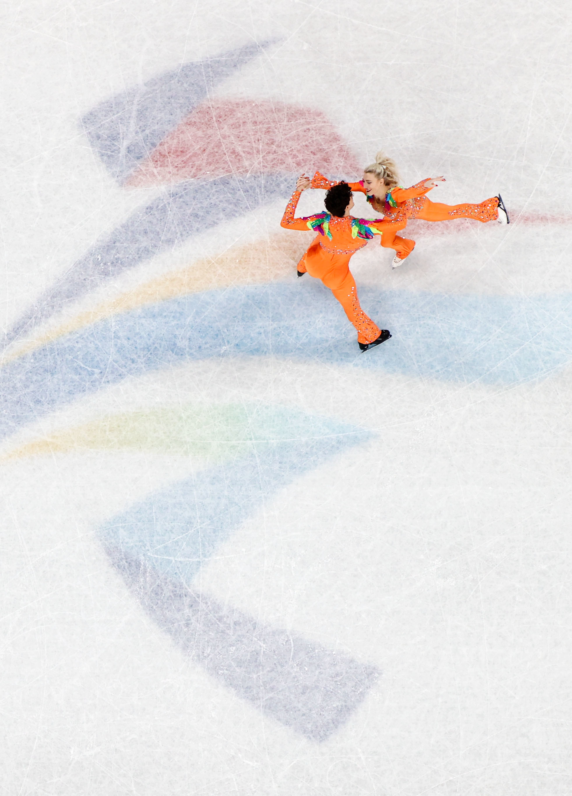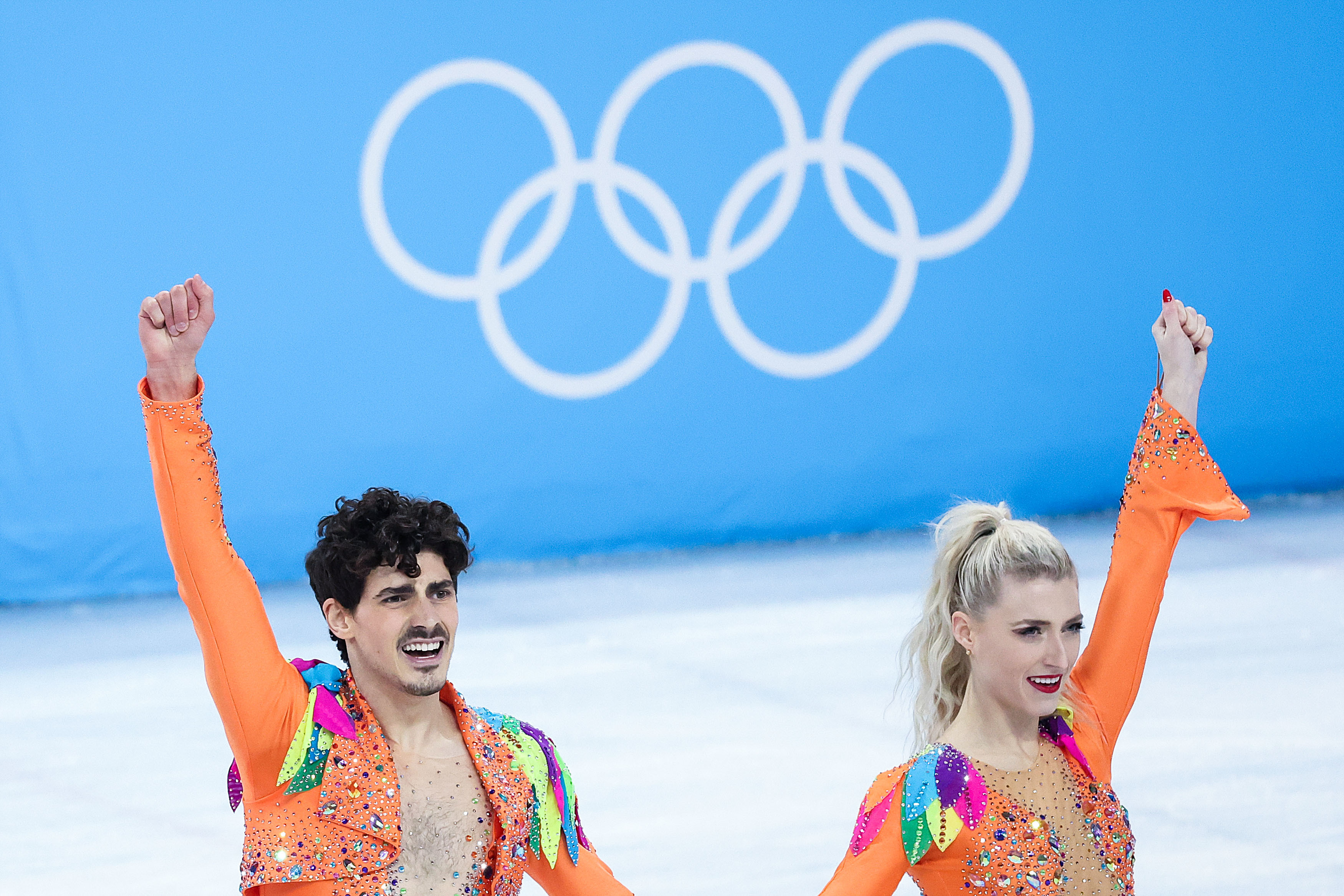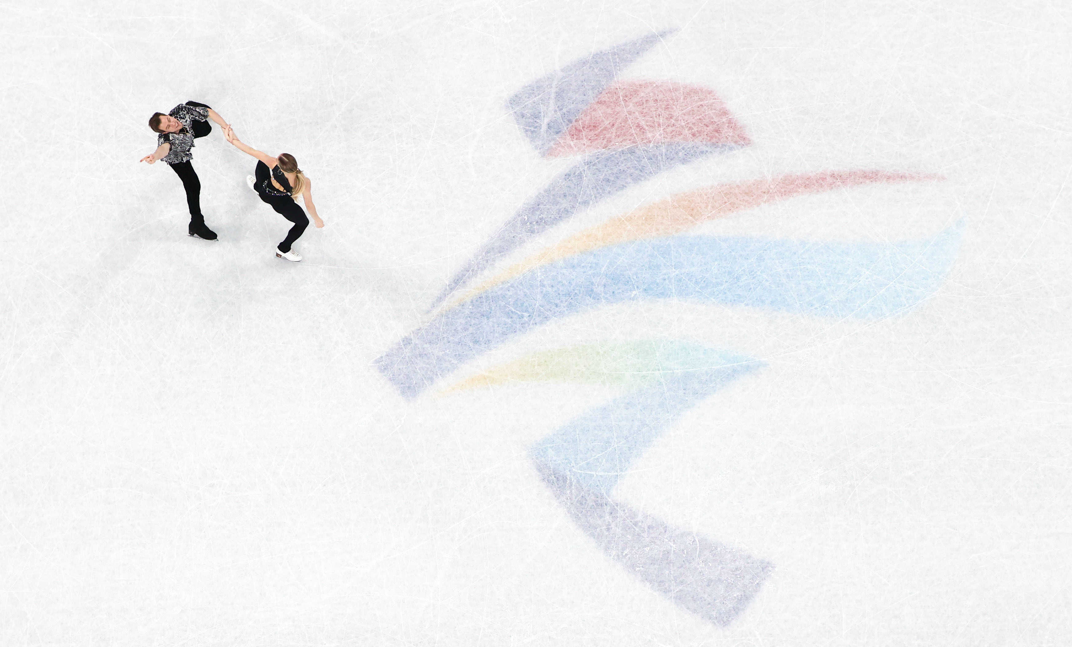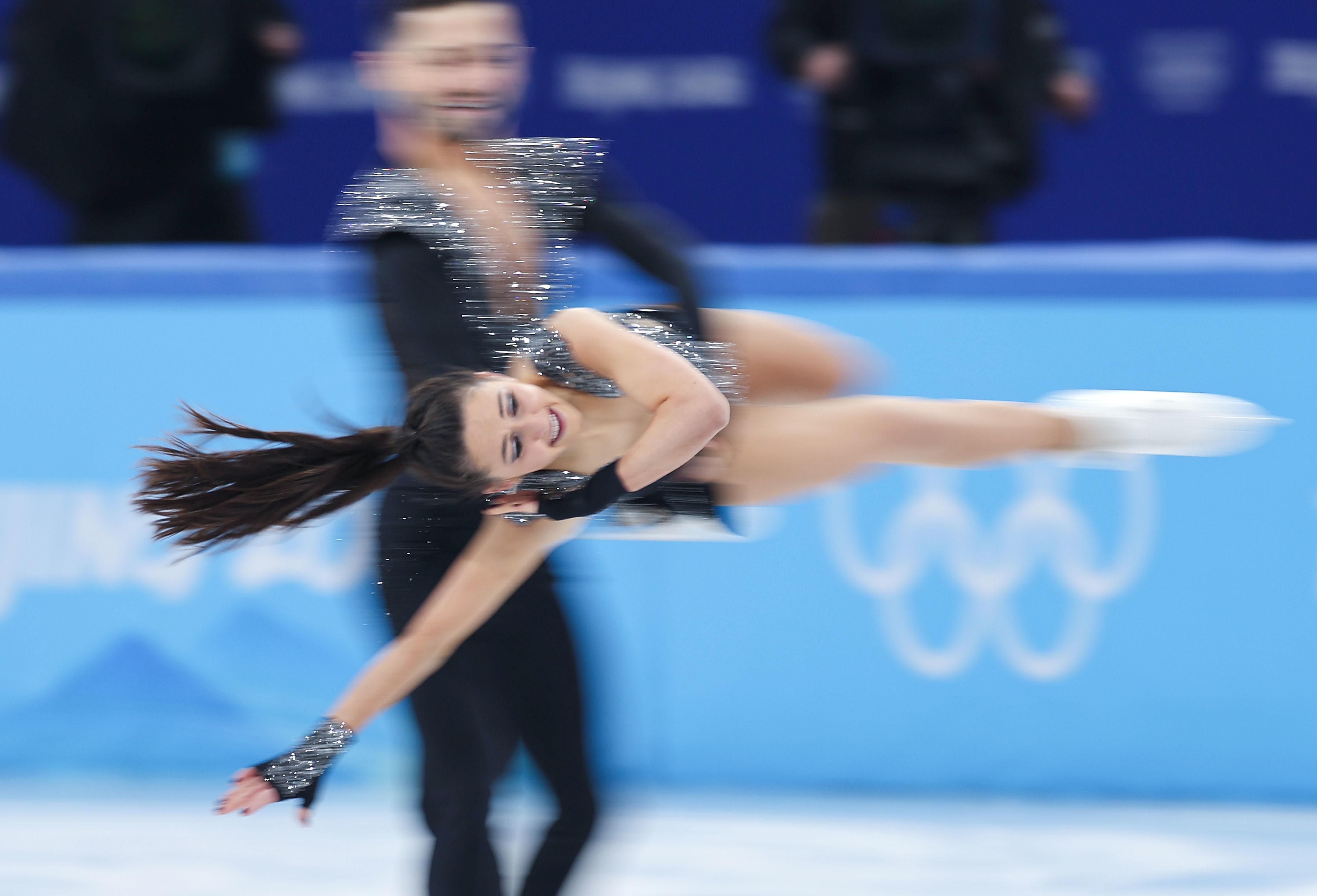 2月12日,加拿大选手派珀·吉勒斯(右)/保罗·波里尔在比赛中。新华社记者 张玉薇 摄