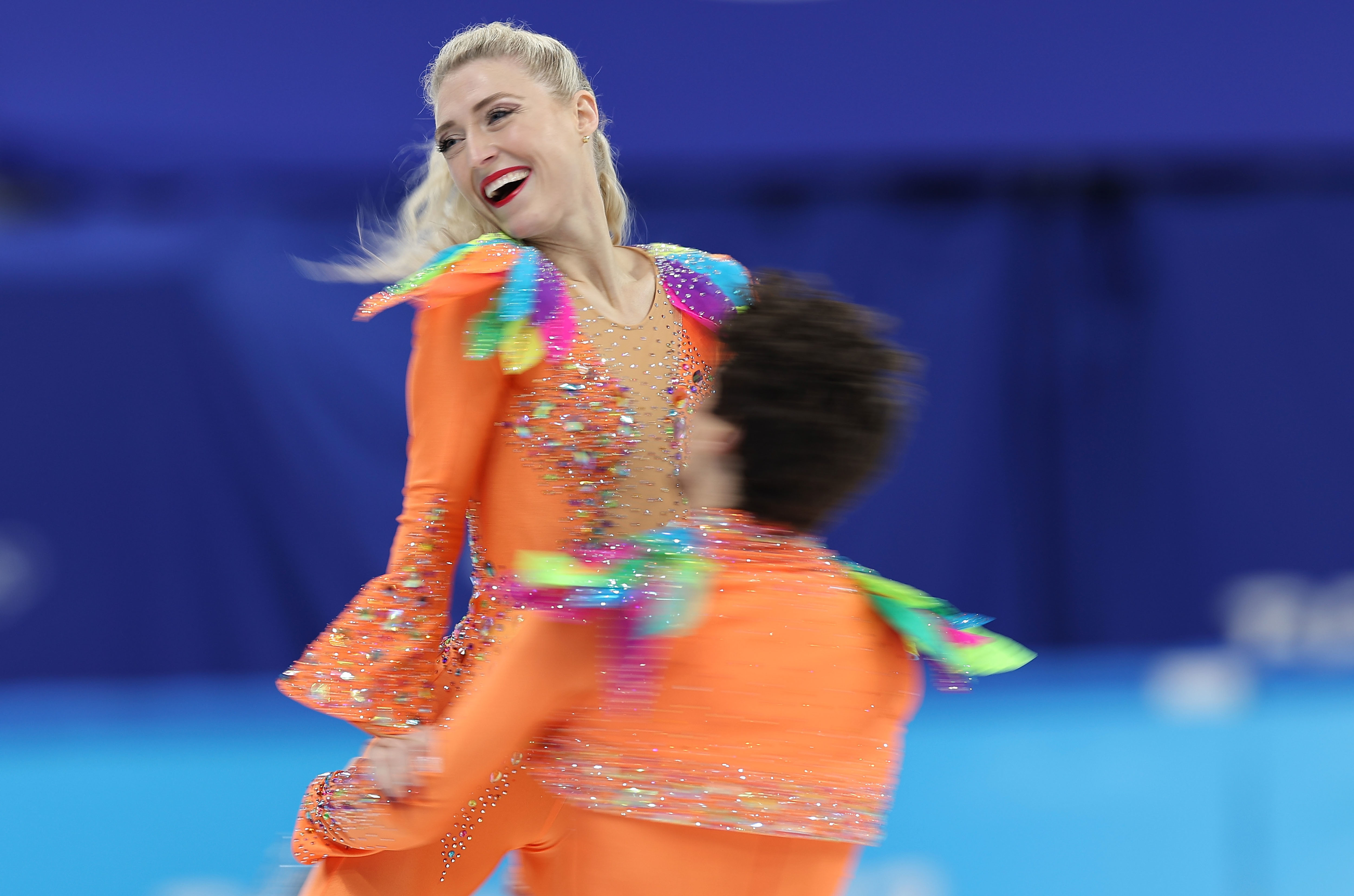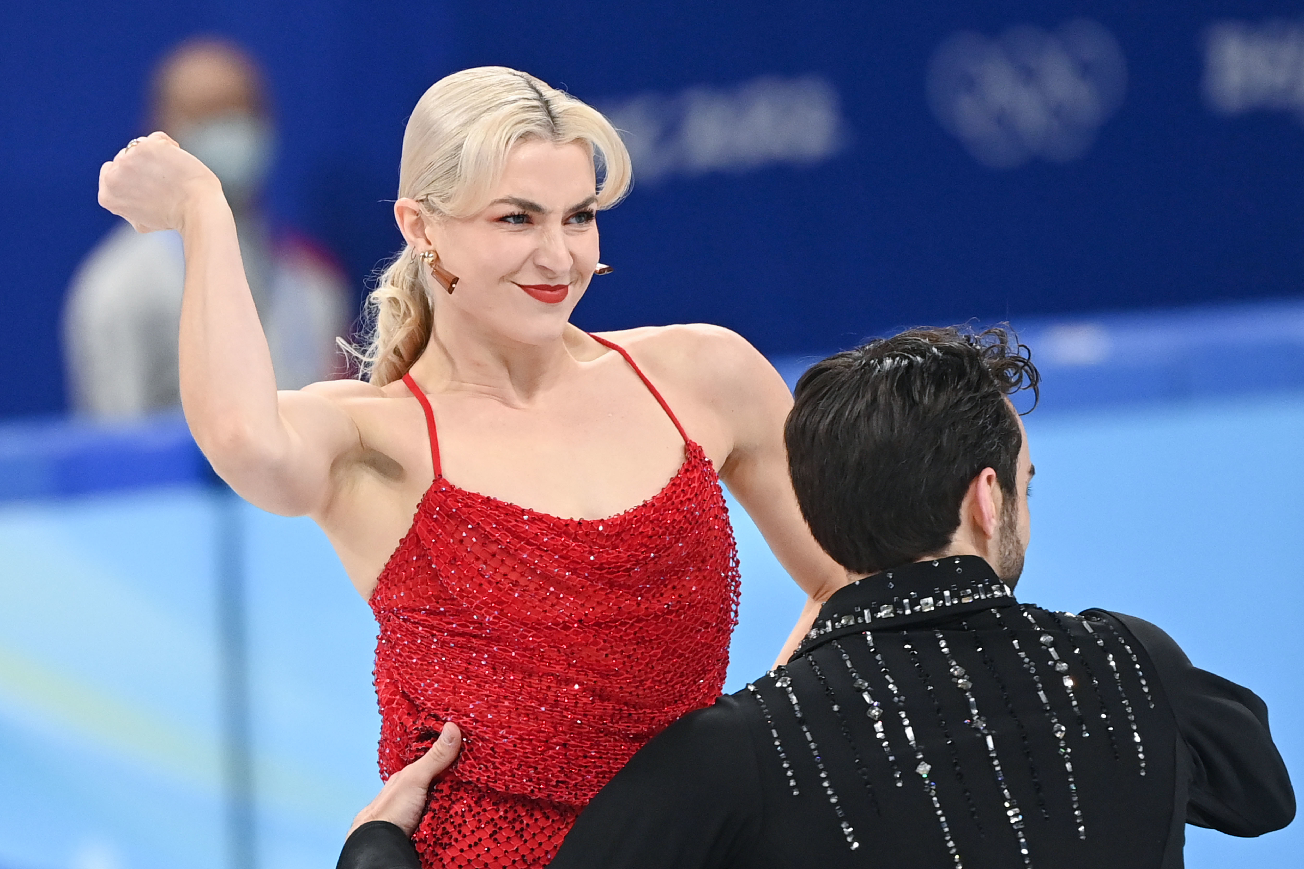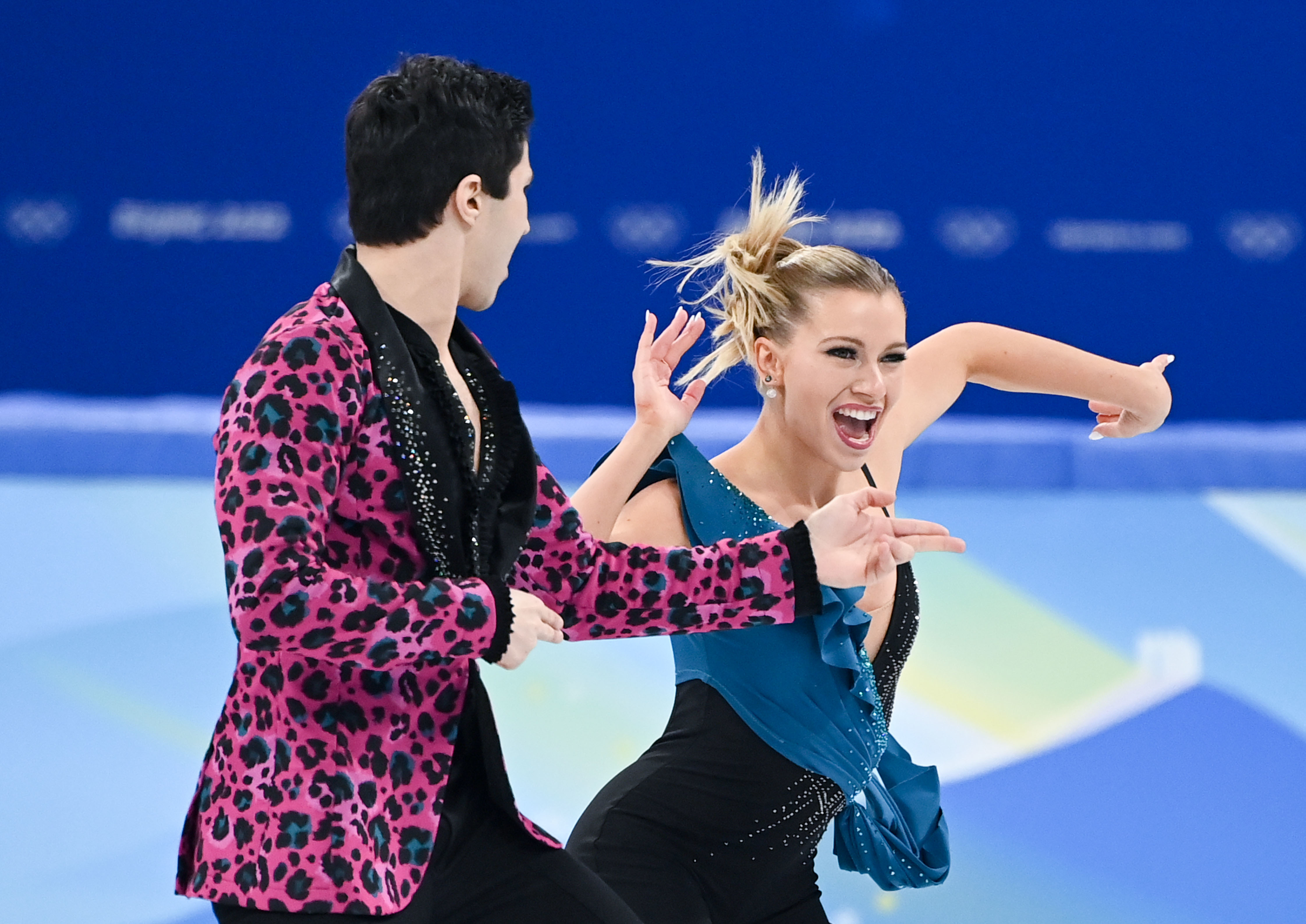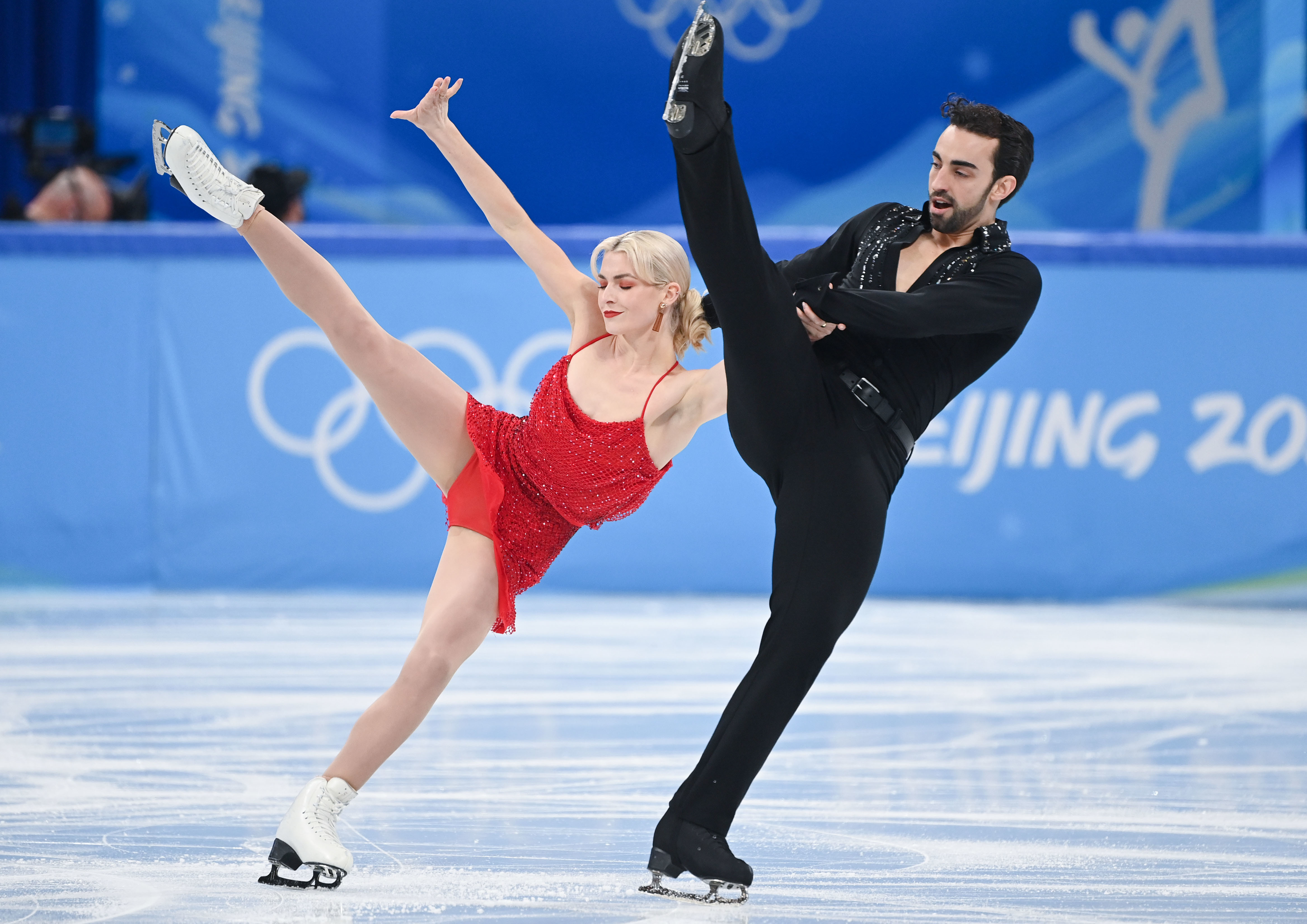 2月12日,加拿大选手派珀·吉勒斯(右)/保罗·波里尔在比赛中。新华社记者 张玉薇 摄