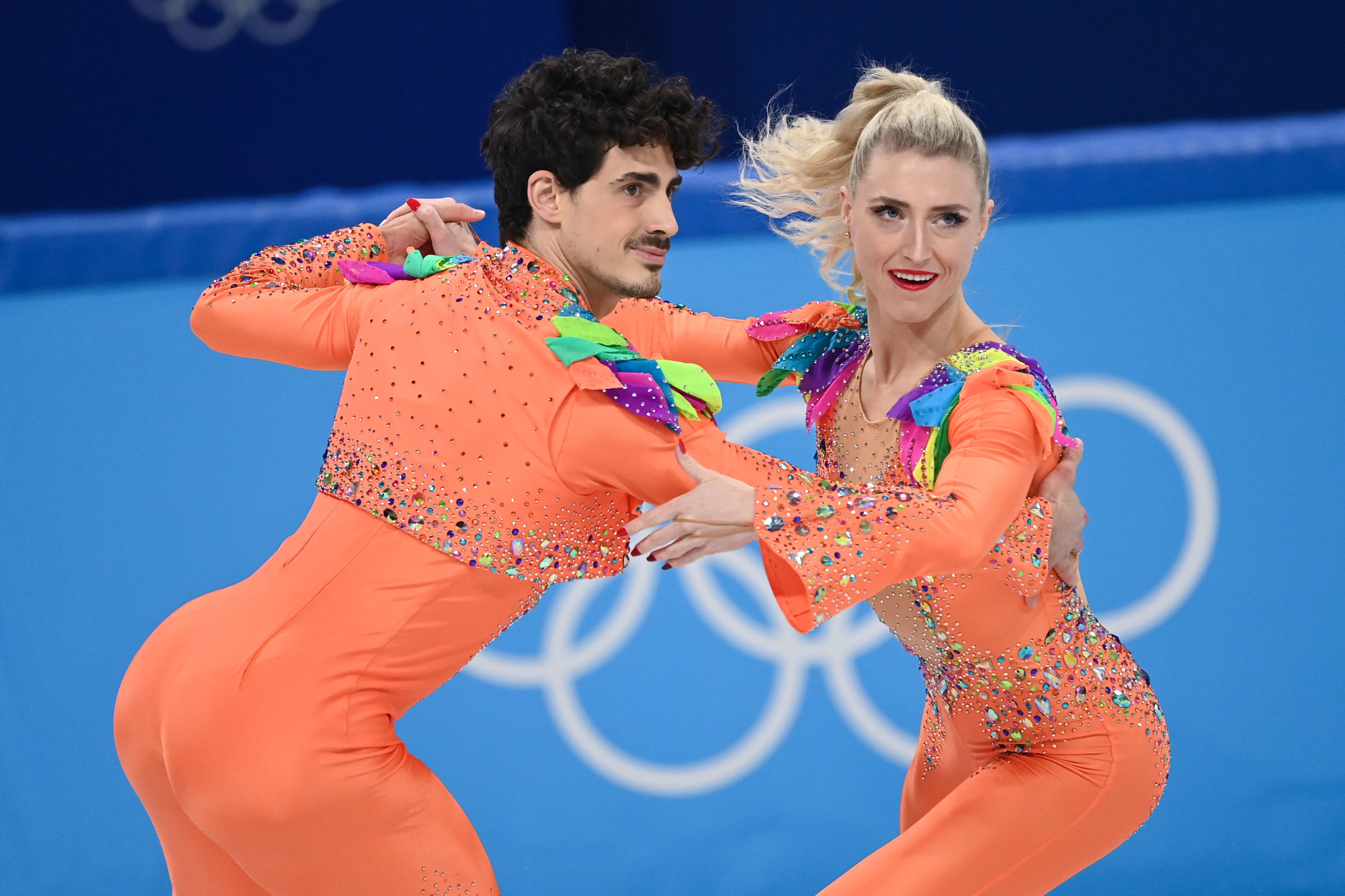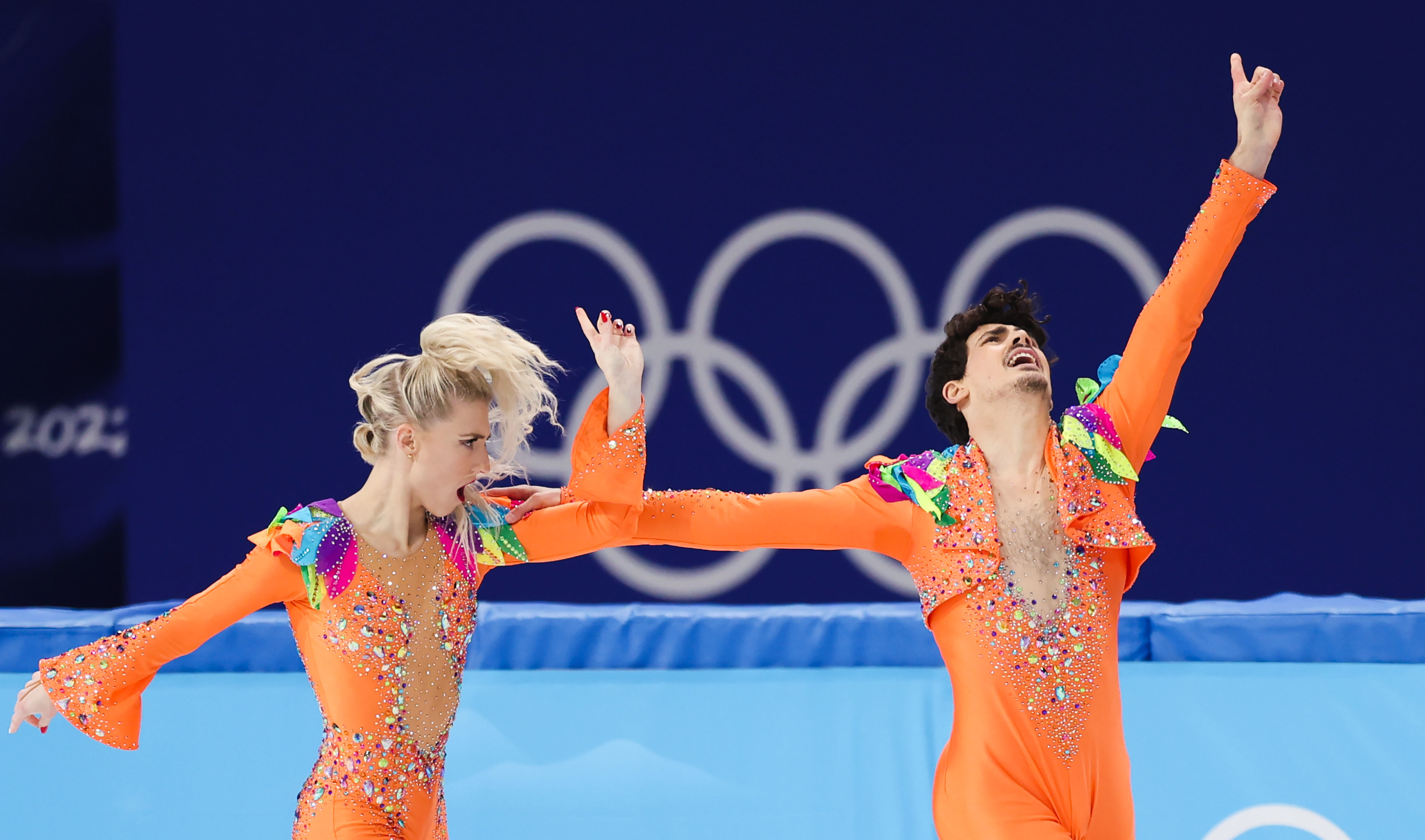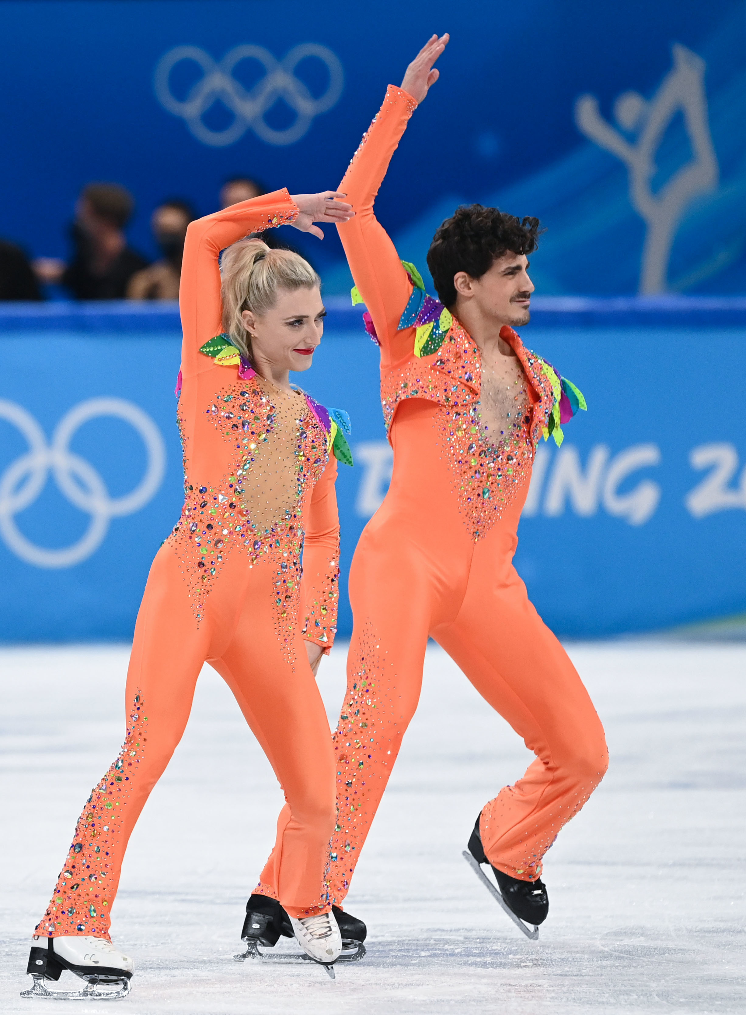2月12日,加拿大选手派珀·吉勒斯(左)/保罗·波里尔在比赛中。新华社记者 曹灿 摄