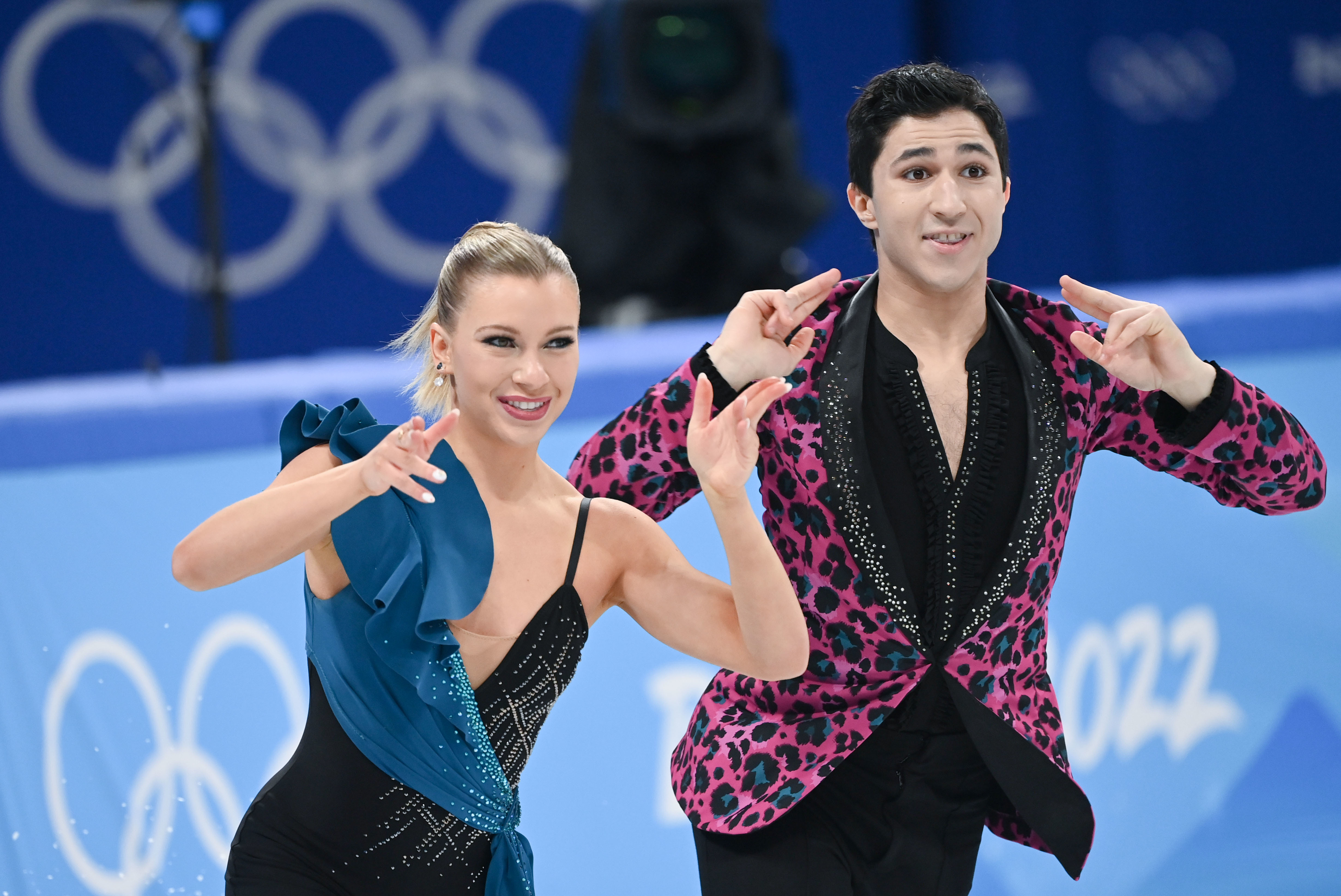 2月12日,美国选手麦迪逊·哈贝尔(右)/扎卡里·多诺霍在比赛中。新华社记者 张玉薇 摄