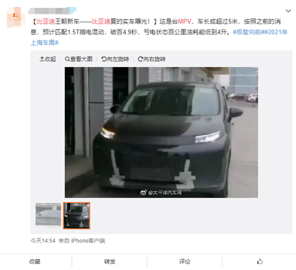 此外,去年有网友曝光了比亚迪中大型MPV的路试谍照,前脸搭载比亚迪标志性的“龙颜”造型,预计新车长度将超过5000mm,轴距超过3000mm,疑似命名为“夏”。