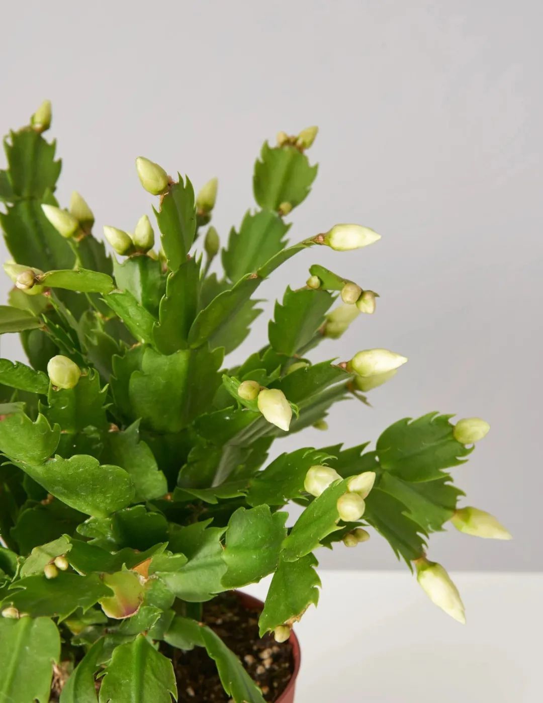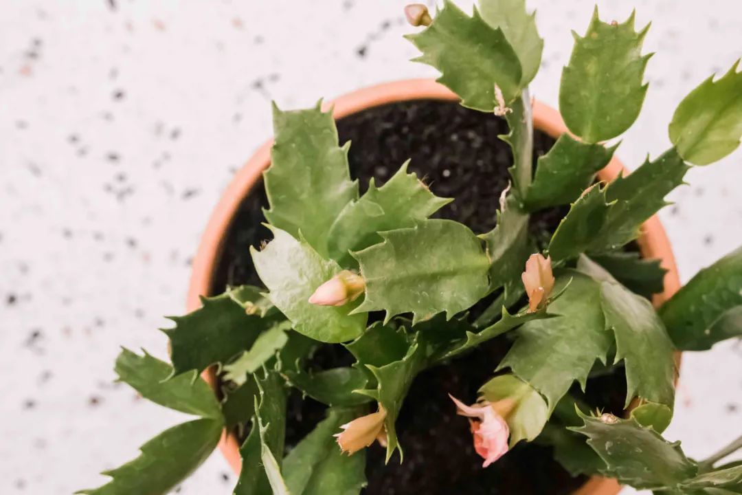 买回来有很多花苞的蟹爪兰,建议大家不要换盆,就用原来的花盆养护,可以套在更好看的花盆里。
