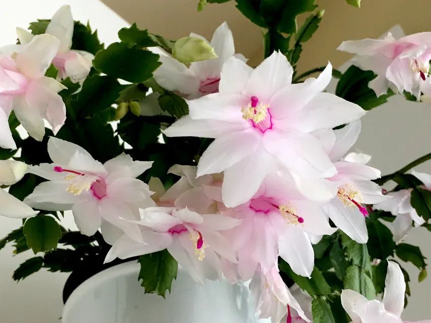 起码要保证有6~8周左右的时间,让盆栽蟹爪兰能摆放在夜晚有黑暗的环境中,旁边如果一直有灯光,可能就会影响花芽的形成。