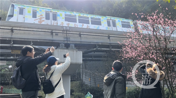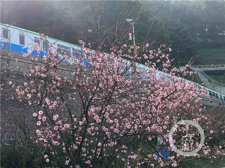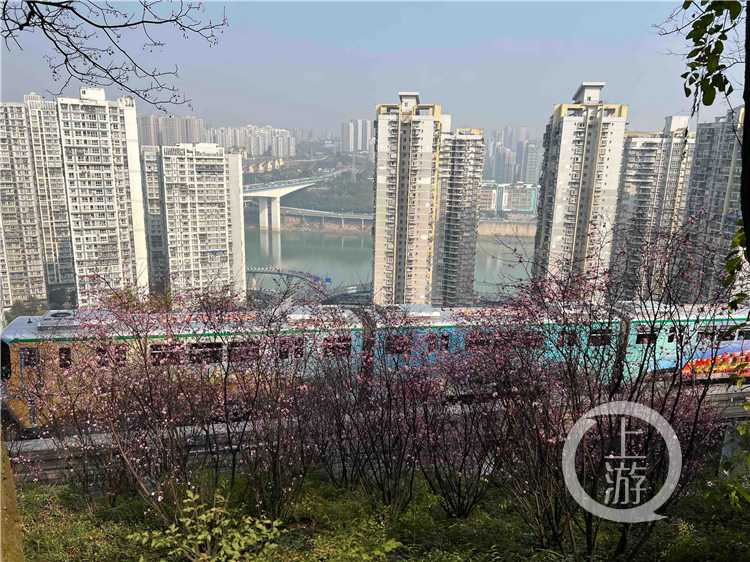 不少市民在这里偶遇“春天”,显得格外惊喜,忙着拍照合影,抓拍轨道交通2号线列车穿梭其中的场景。