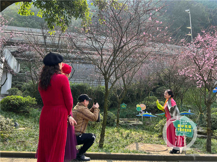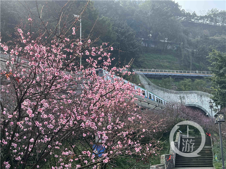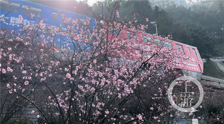 2月13日中午,阳光明媚,记者在佛图关公园内看到,佛图关隧道口周围的美人梅已陆续开放,呈现出一片春天的美景。