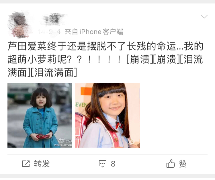 期间也一直有网友为爱菜的“长残”而难过。