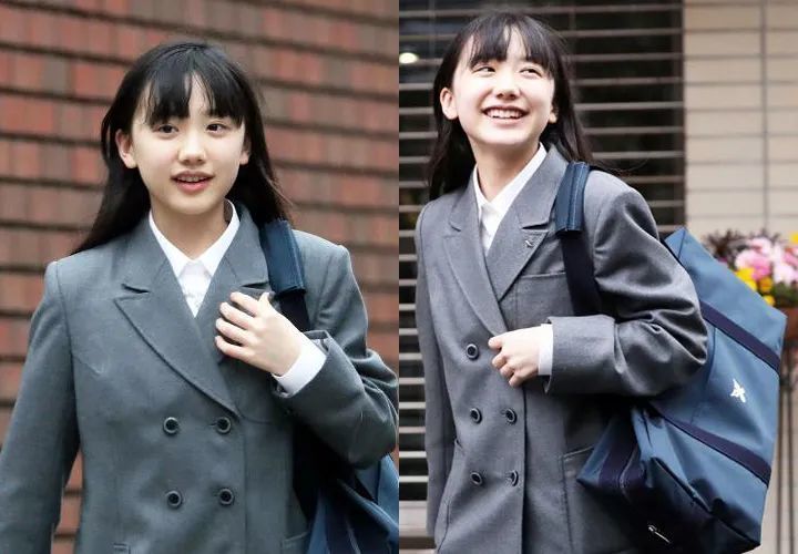 2017年她更是放弃如日中天的事业,选择直接息影,专注于学业,并以全国前0.033%的成绩考入了名校——庆应义塾中等部,上面那组灰色制服就是她入学时候的照片。