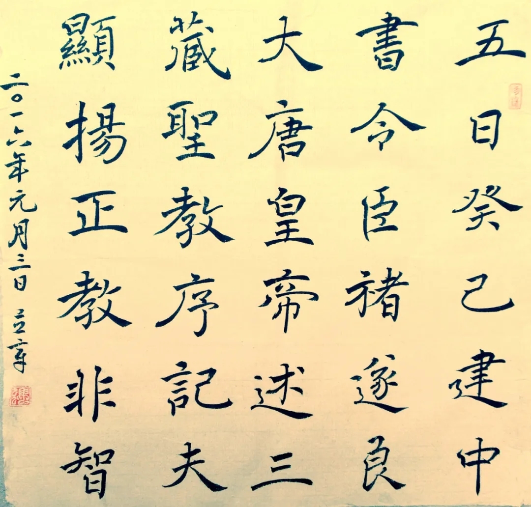 书法家孙过庭说过“察之者尚精、拟之者贵似”,笔者结合自身的学书经历,对此深有体会。对于学生而言,他们有时临写得不像,主要不是手上的问题,而是眼力问题,是他们不知道如何去观察例字特点。笔者依照《书法指导纲要》和《语文课标》,确定了各个学段字形观察的侧重点,进行有针对性地训练。同学们也在对字形观察分析中,逐步养成了自我观察、自我纠偏的学书习惯,形成了下笔有由的意识,从而提高了学习效率,提升了书写技能。