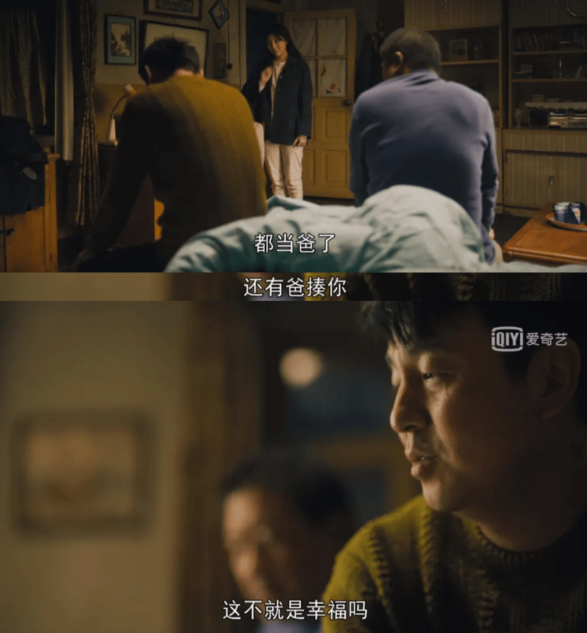 那种坚强,心碎与隐忍杂糅的复杂情绪,都写在微红的眼眶和颤抖的双手里,男儿有泪不轻弹,只因未到伤心处,最后那眼泪是直接滴在观众心头了。就算当爹的有做的不好的地方,还能怎么办,当然是原谅他。