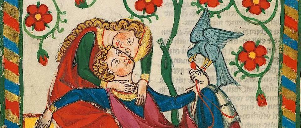 特罗巴多和特罗维尔的作品往往高贵典雅,与戈利亚德的低俗露骨形成鲜明的对比。典雅爱情是他们反复唱诵的主题。从某种程度上说,爱情歌曲主导了中世纪世俗音乐文化。在这一点上,现代人的音乐品味似乎与八百年前的人有着某种微妙的联系。可望而不可即的爱恋似乎是个超越时代的主题。但中世纪的典雅爱情观有着高度模式化的特点,总是着力描绘无法跨越的鸿沟和无法接近的爱人。不过即便是在与宗教音乐南辕北辙的爱情歌曲中,滋长的情欲背后也隐藏着一种高雅的礼仪规范,与神圣赞美诗所表达的圣洁之情有着异曲同工之妙。在本质上,那些献给圣母马利亚的神秘赞美诗或者根据《雅歌》( 是《圣经·旧约》中的一卷,传说为古代以色列的所罗门王所著,书名取自书文第一句,“所罗门的歌,是歌中雅歌”,内容以歌颂两性之爱为主)中对情欲描写创作的绘画,与歌颂典雅爱情的世俗歌曲是相通的,其主题都是无限渴望却无法触及的挚爱。