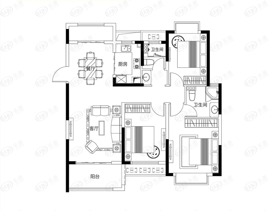 120平的3室2厅2卫,大三房,虽然奢侈了一点,但也正常。南北双阳台,通透实用。